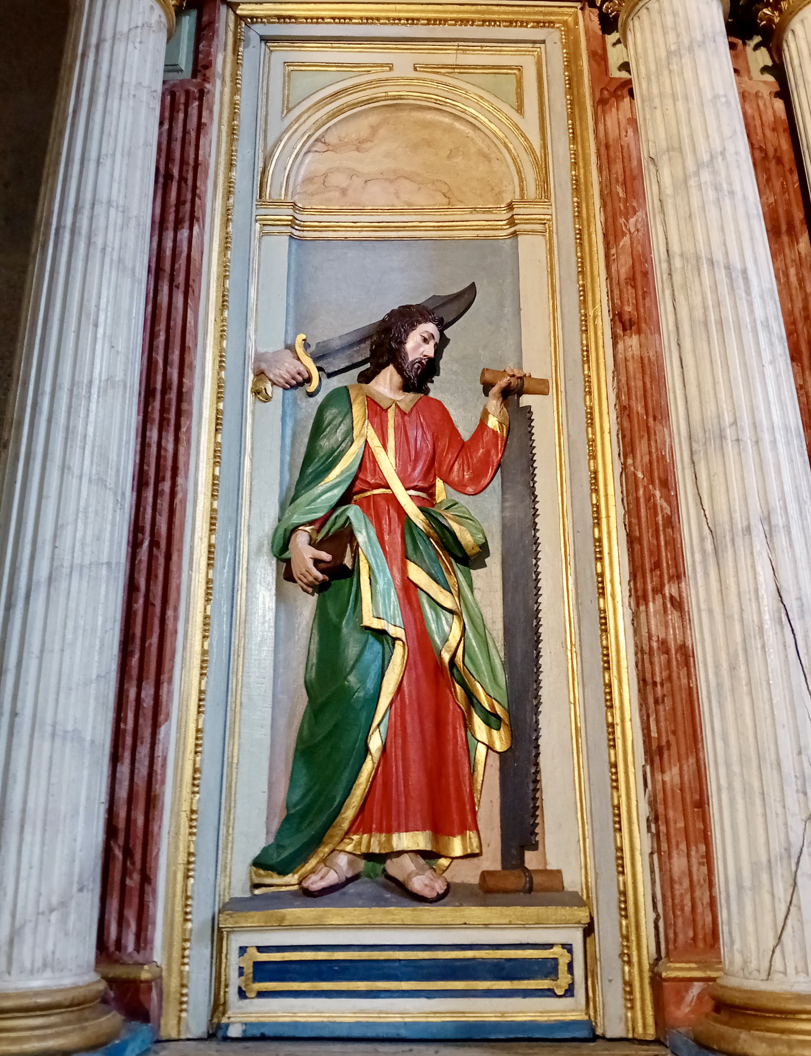 Con la dedicación confirmada, se encomendó al maestro Manuel de Luaces la realización de un retablo neoclásico, considerado una de las piezas más destacadas de este estilo en la ciudad de Lugo. En su parte central figura la imagen de la Virgen del Pilar, flanqueada por San Simón, a la derecha, y San Froilán, a la izquierda. En el ático se representa la Crucifixión del Señor. La presencia de San Simón alude al promotor de la obra, mientras que la de San Froilán evoca el pasado de la capilla, durante siglos dedicada al patrón lucense.