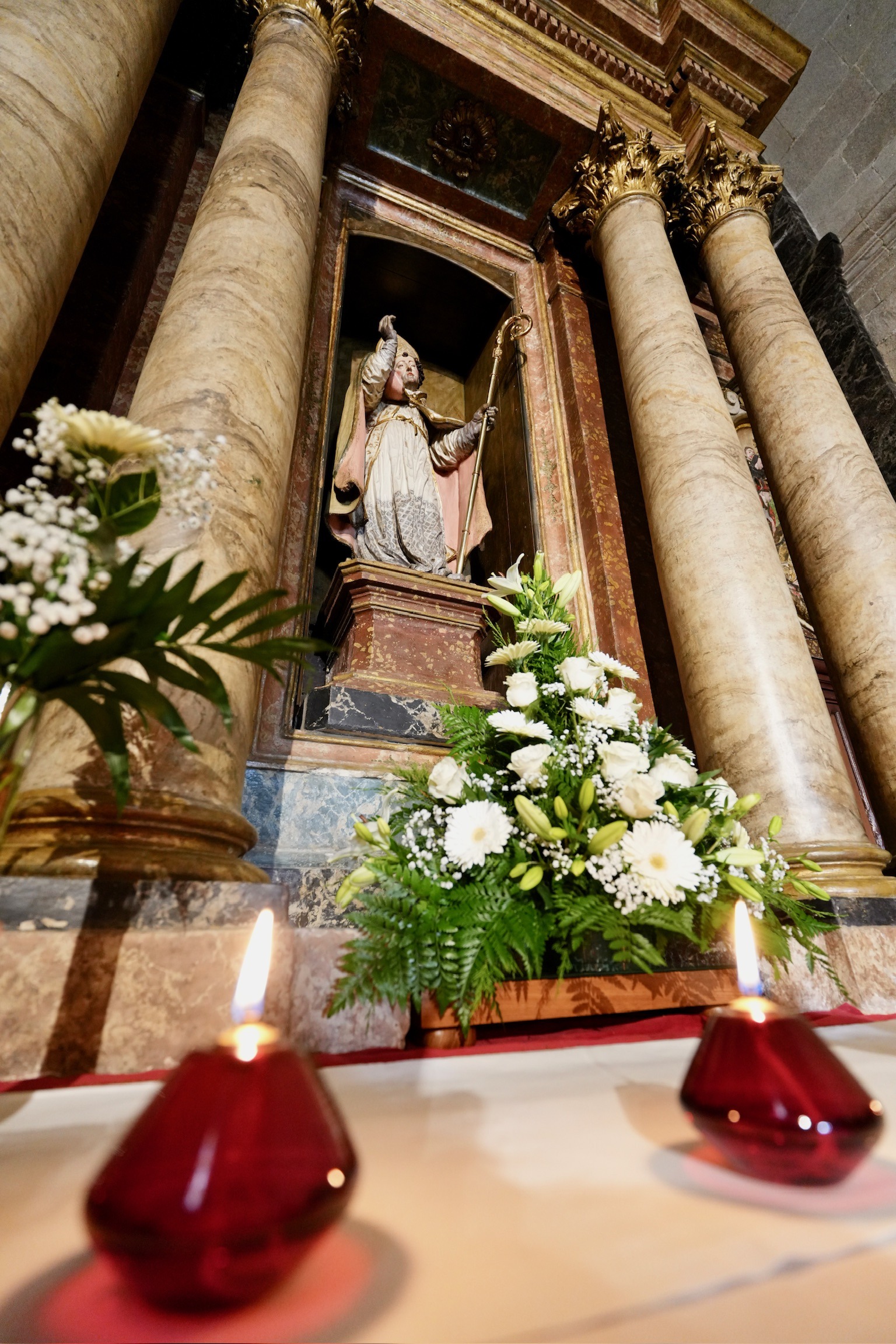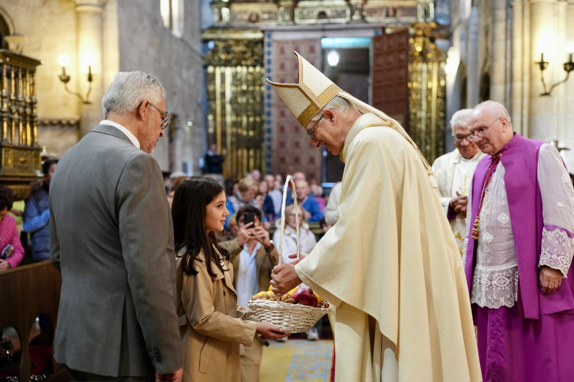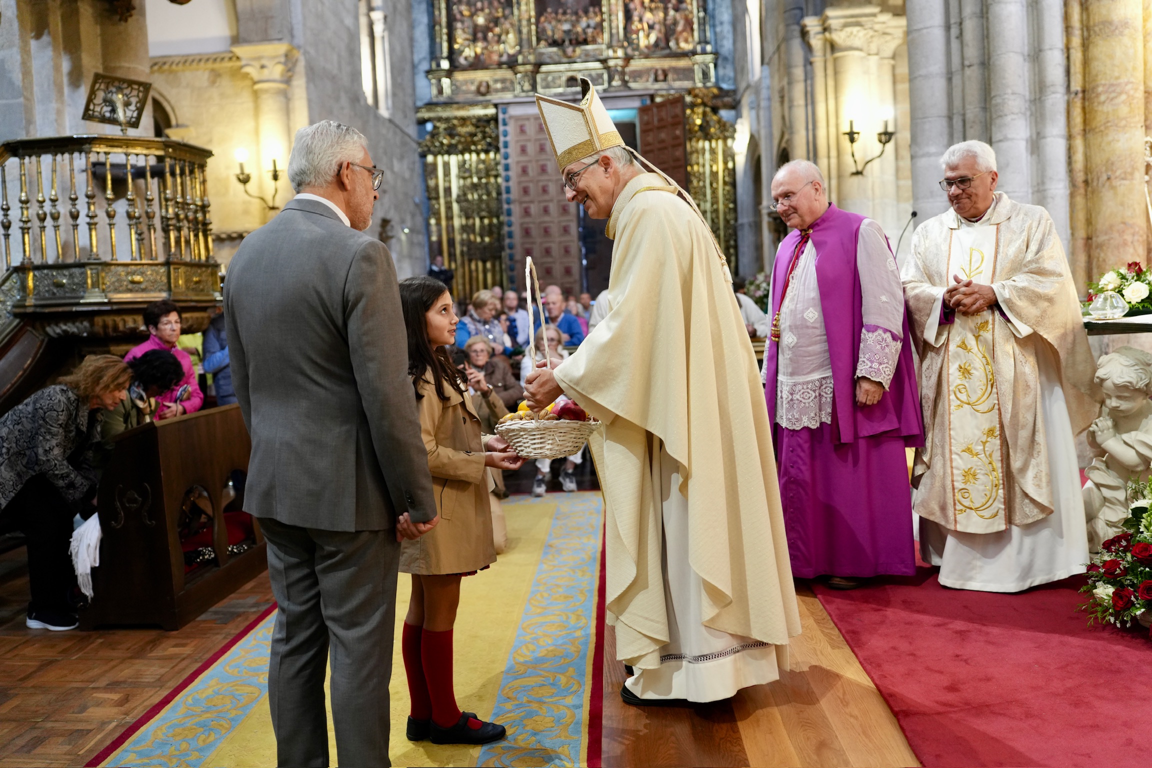 Mons. Carrasco concluíu a súa intervención convidando a encomendarnos ao patrón e a pedir, xunto á “Virxe dos Ollos Grandes”, pola saúde dos enfermos, polos que están lonxe das súas familias e pola xente nova: “Pidámoslle que interceda polas nosas familias, polas nosas parroquias, polas nosas autoridades civís. Que a todos nos conceda celebrar con alegría este día de festa do noso patrón”.