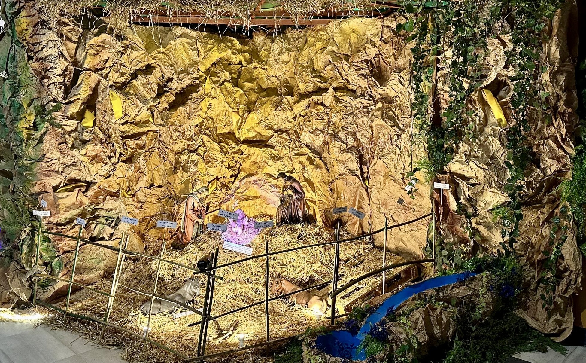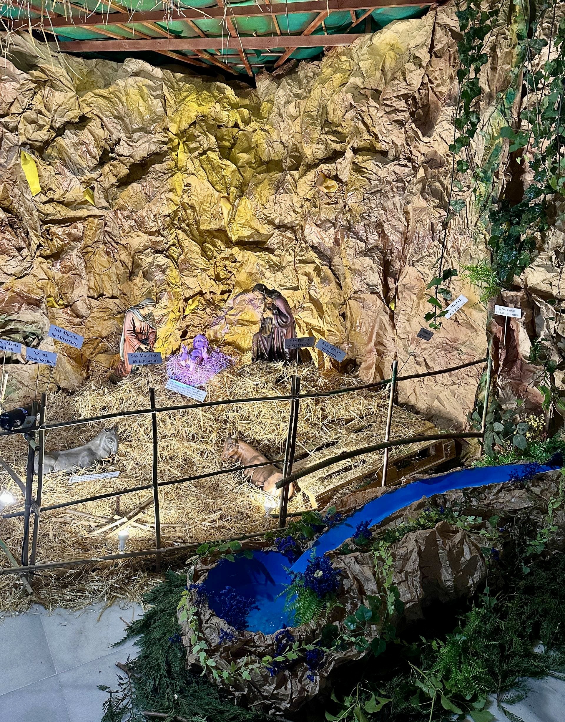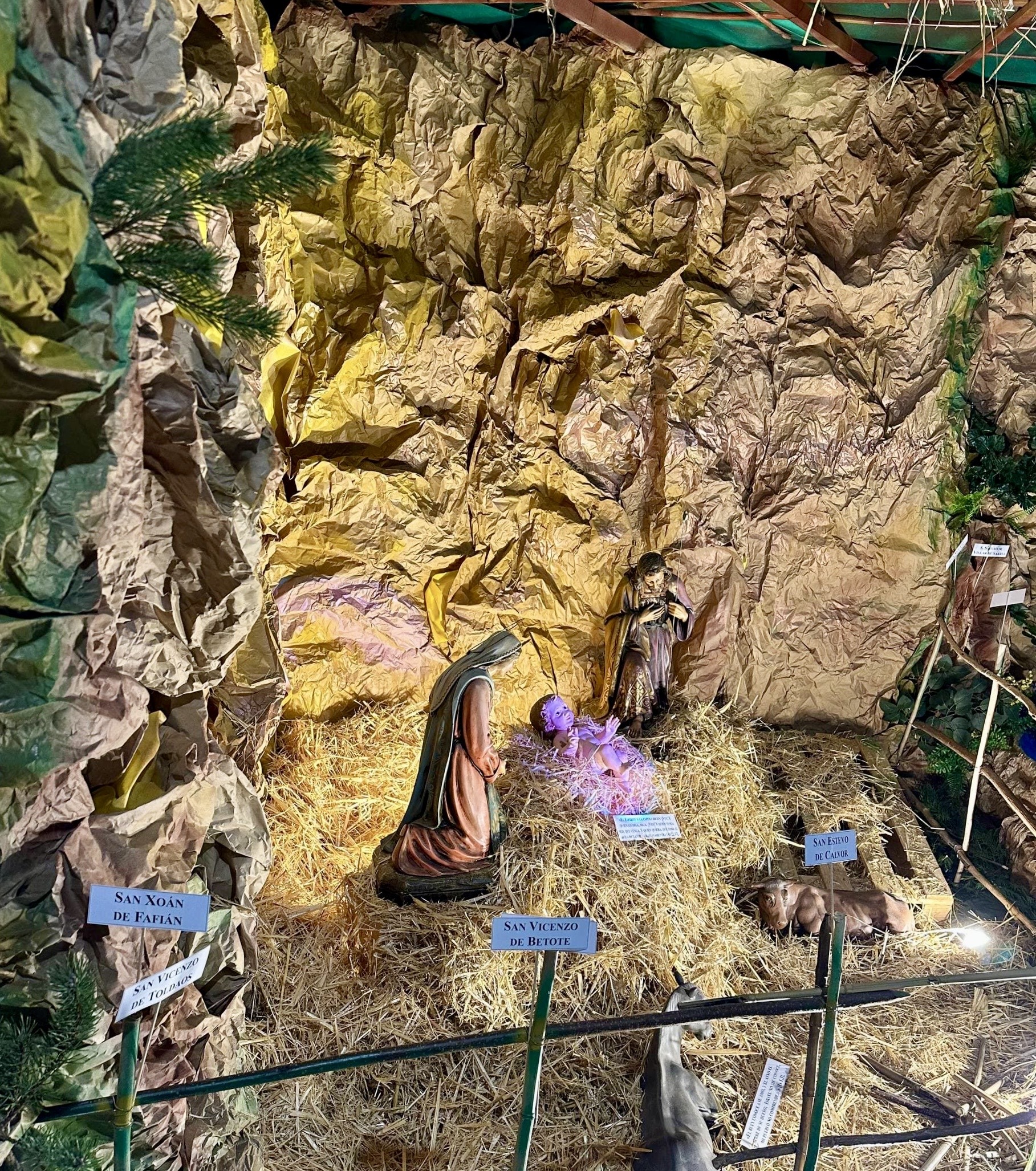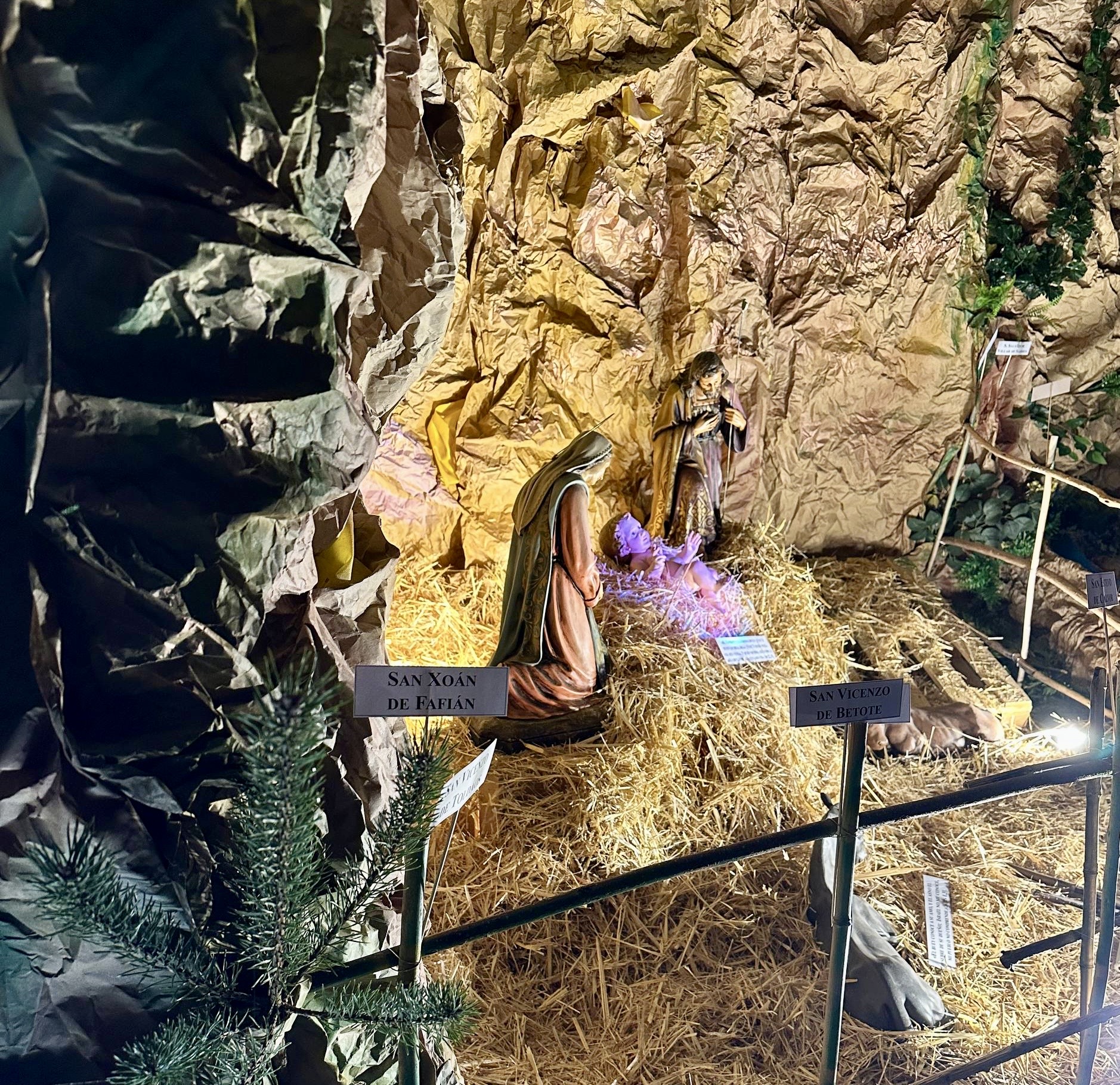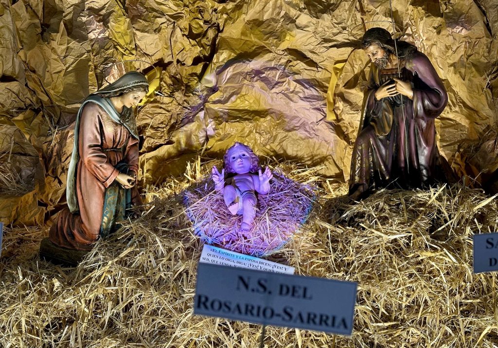 Tras detenerse en los detalles escondidos, el visitante llega al corazón: el Pesebre. El lugar tradicional donde contemplamos a Jesús, María y José, junto a la mula y el buey. Todo se vuelve cálido, en contraste con lo anterior: porque donde está Dios solo puede existir sentido y luz.