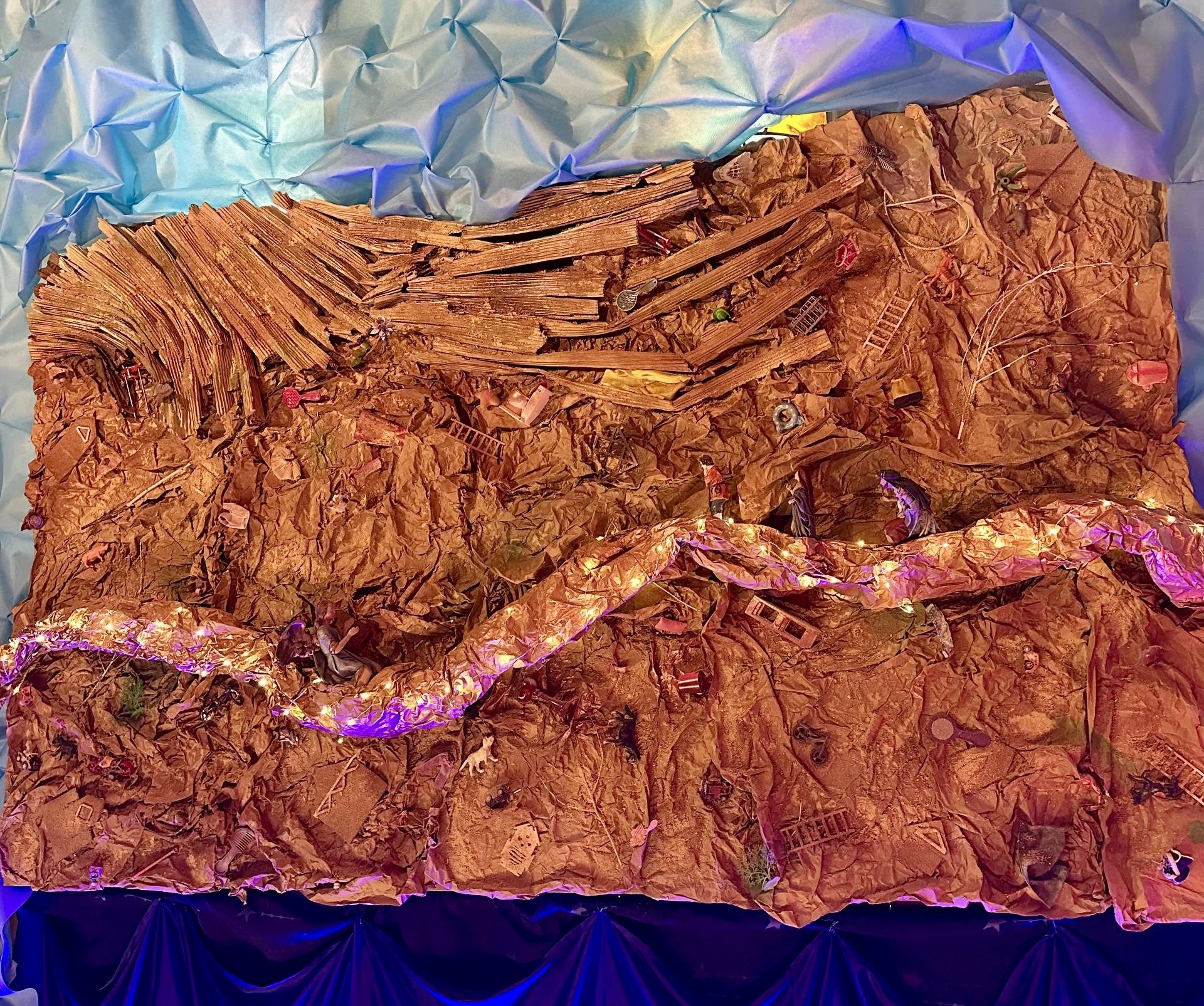 El segundo espacio conmemora el desastre natural sufrido en Valencia, cuyo primer aniversario se celebró recientemente. Quedan preguntas, como siempre quedan. Y el agua aparece aquí con toda su fuerza simbólica: signo de muerte y vida para los cristianos.