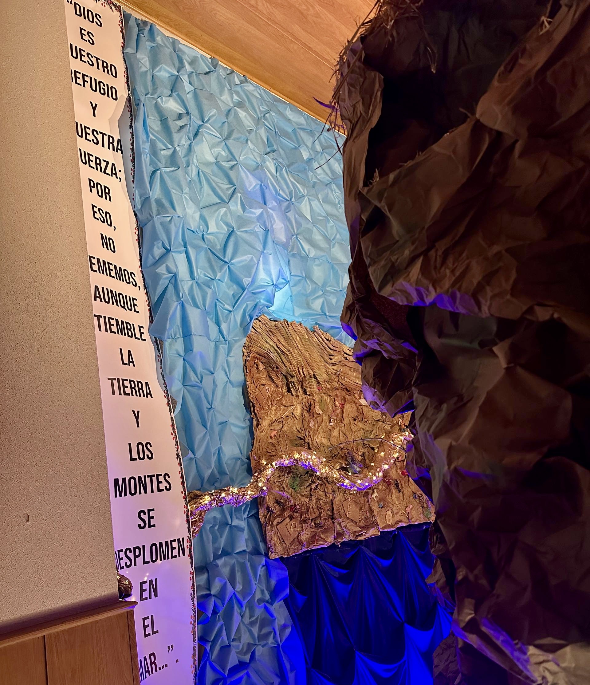 El montaje está pensado para recorrerlo despacio. No es un adorno: es una catequesis. Es memoria. Es Evangelio.
