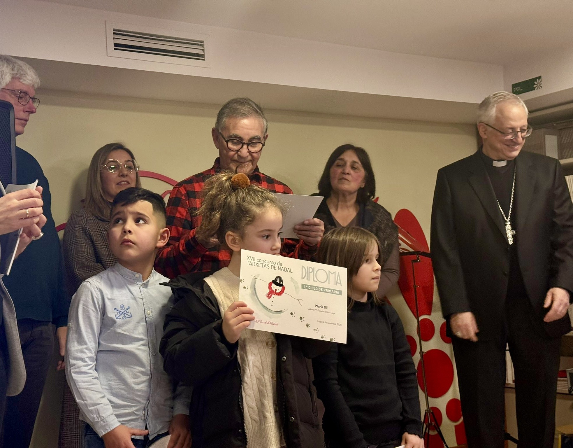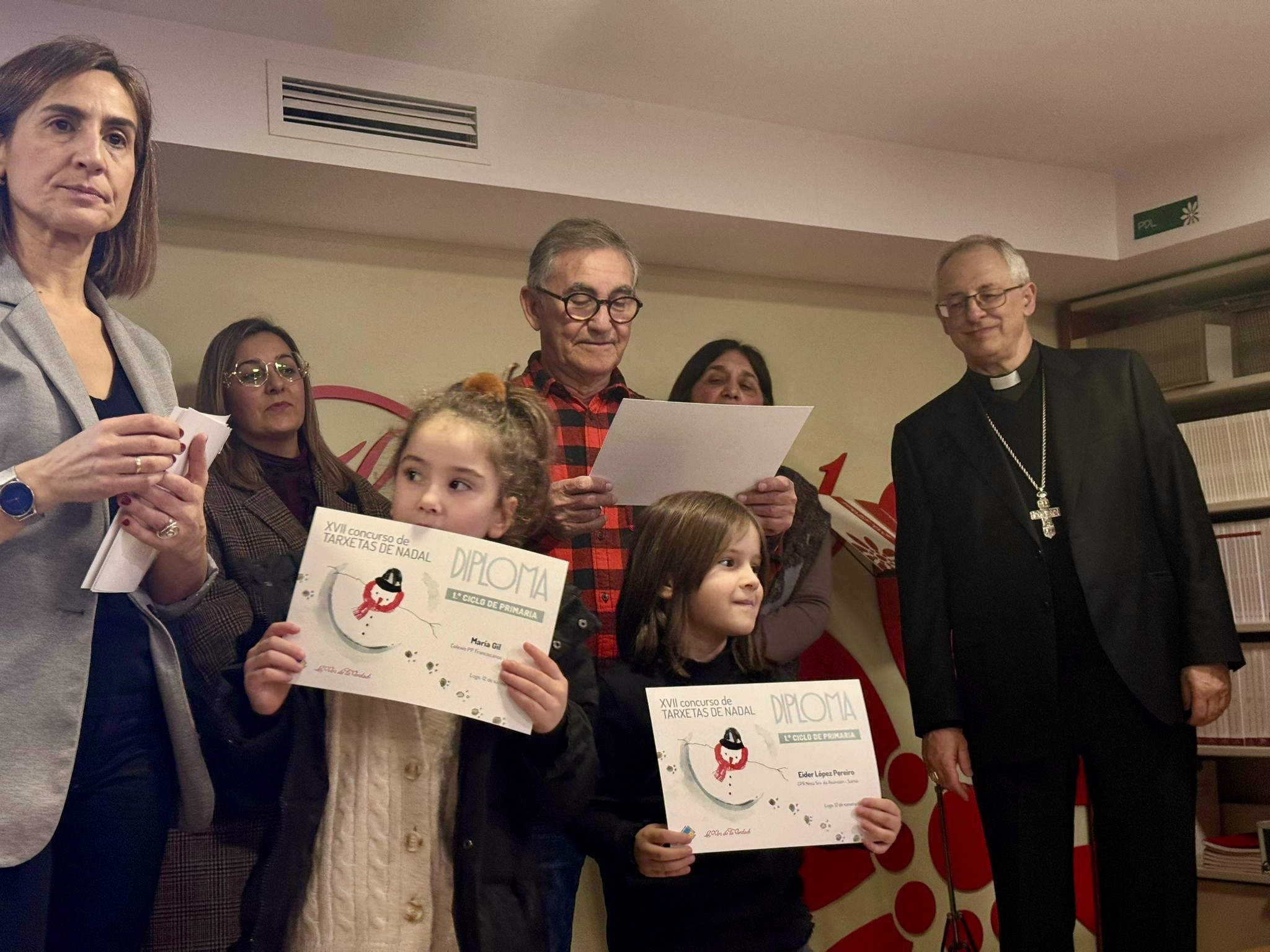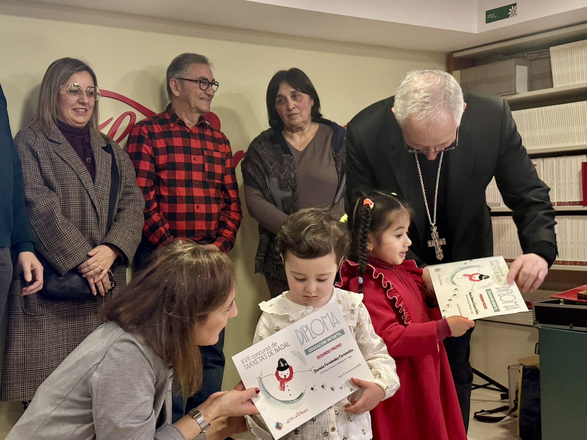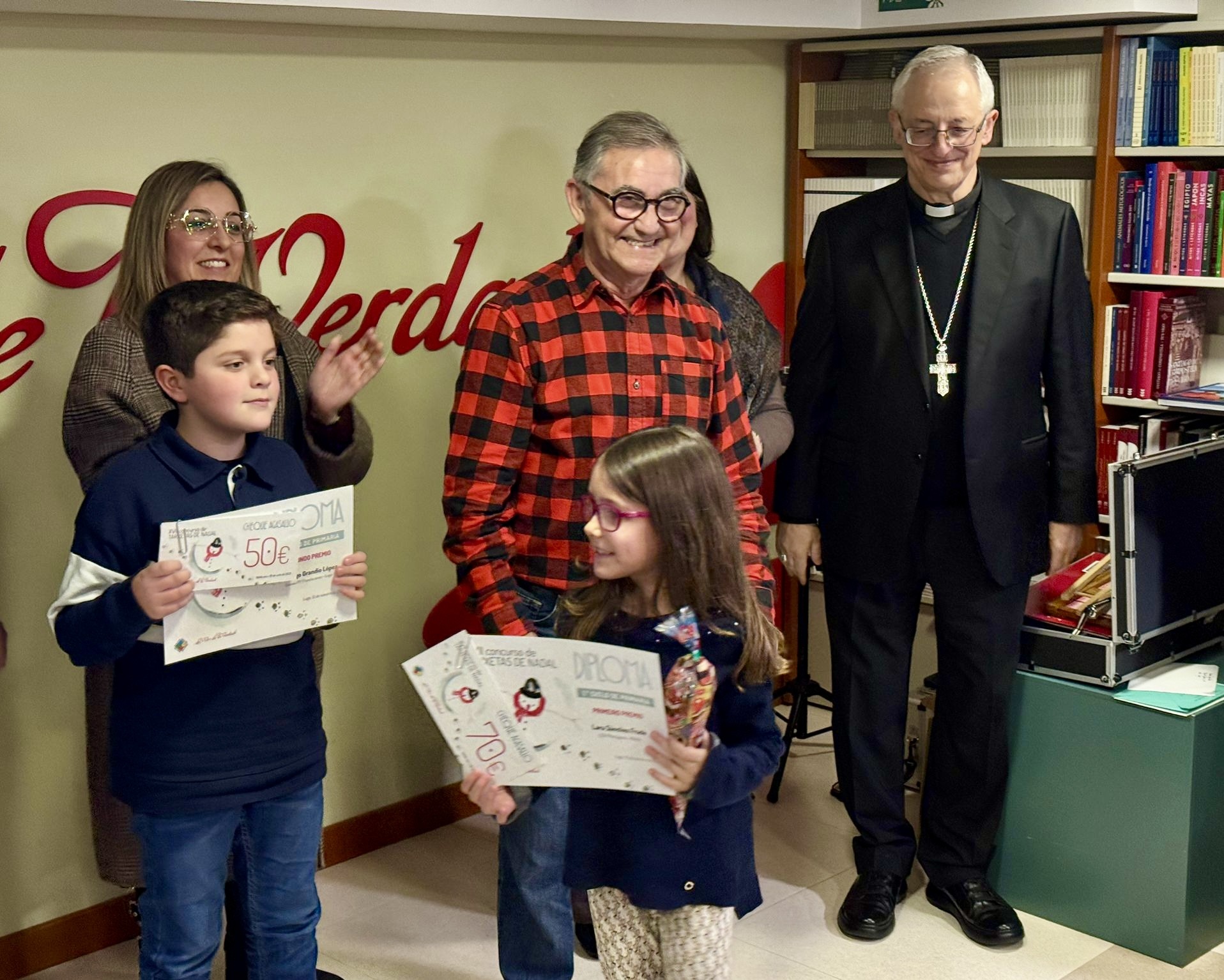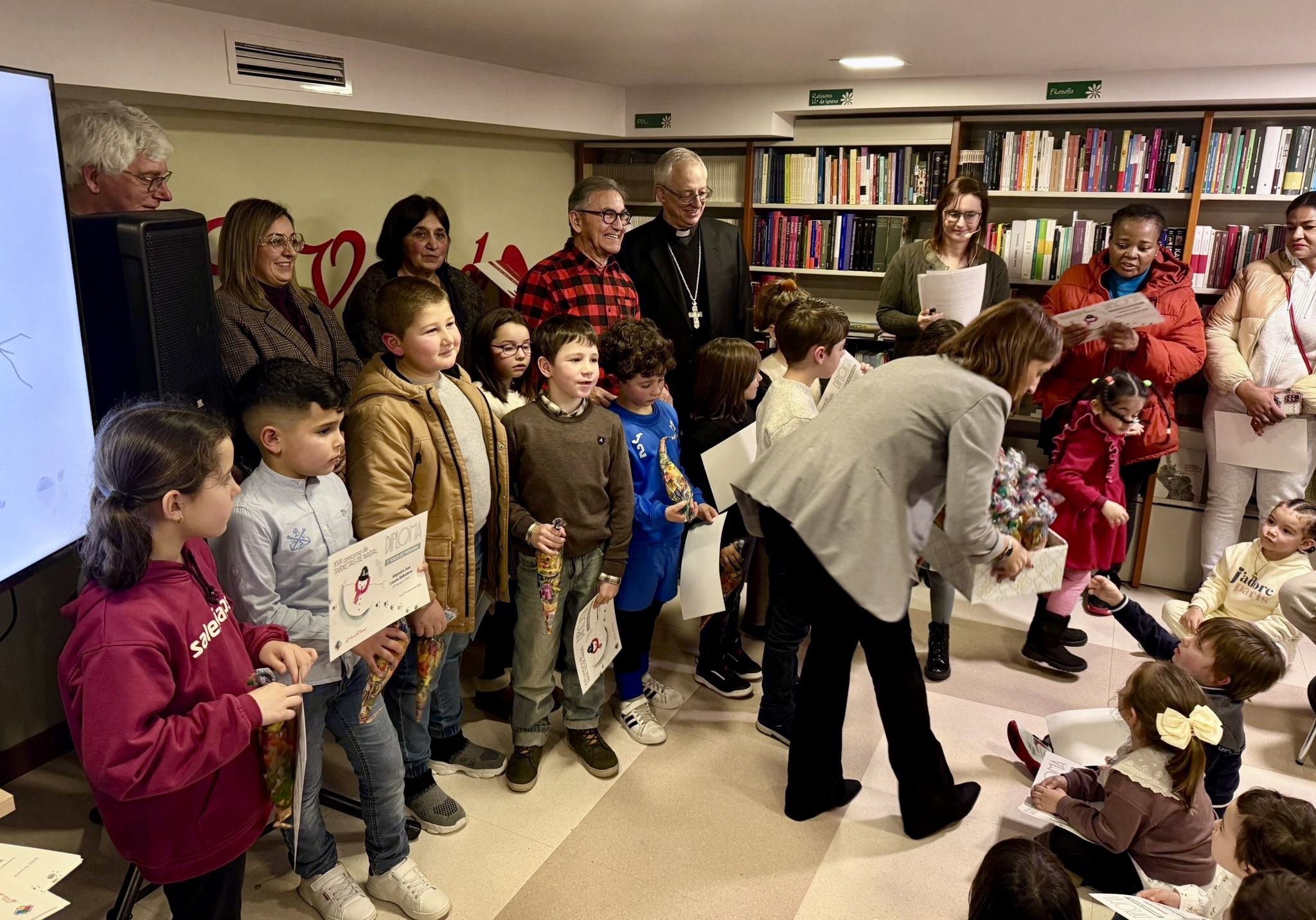 La Librería La Voz de la Verdad acogió el pasado lunes 12 de enero el acto de entrega de los premios del XVII Concurso de Tarxetas de Nadal, en una jornada que reunió a alumnado, familias y profesorado y que contó con la participación del obispo de Lugo, Mons. Alfonso Carrasco, presente en la entrega de galardones.