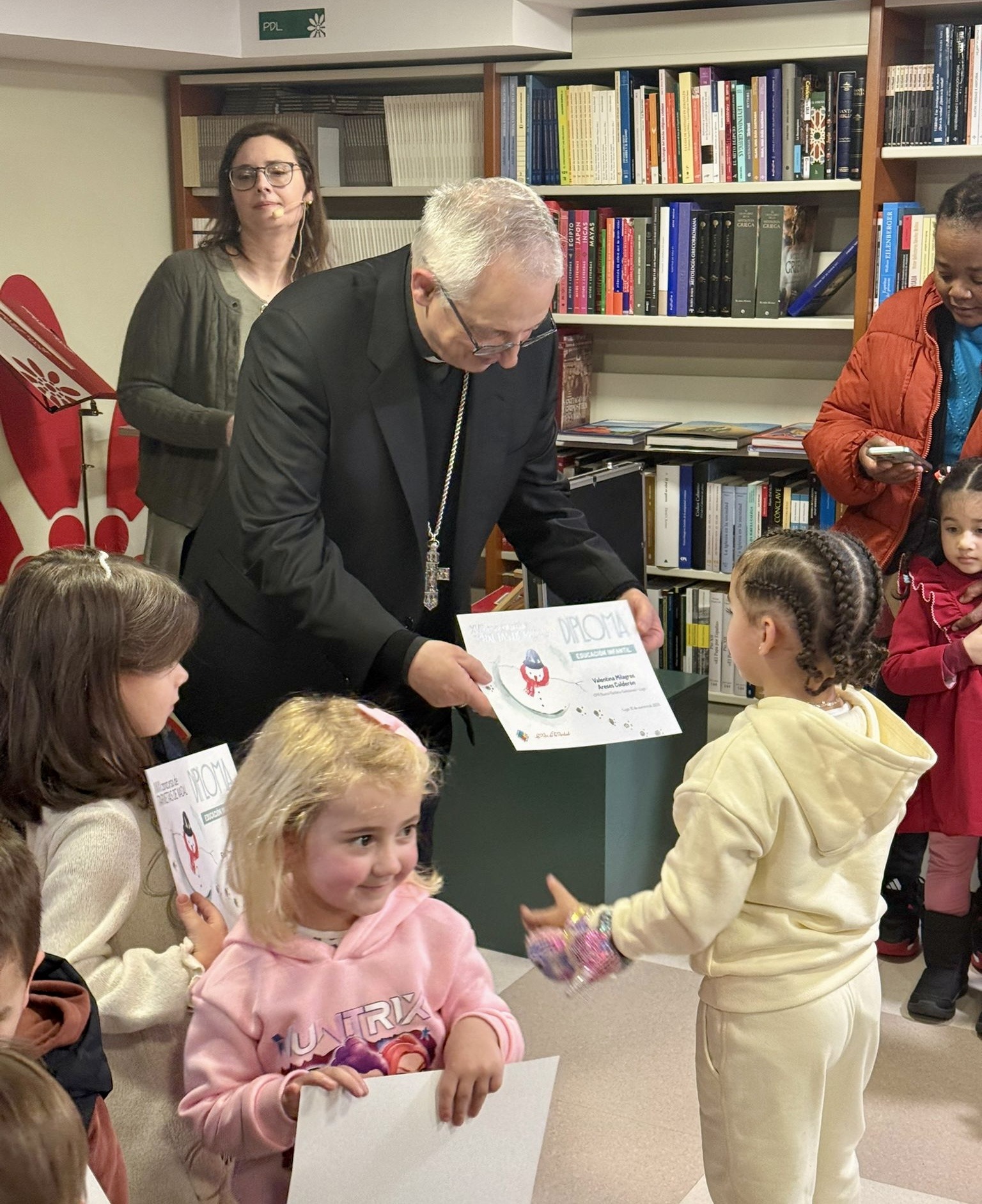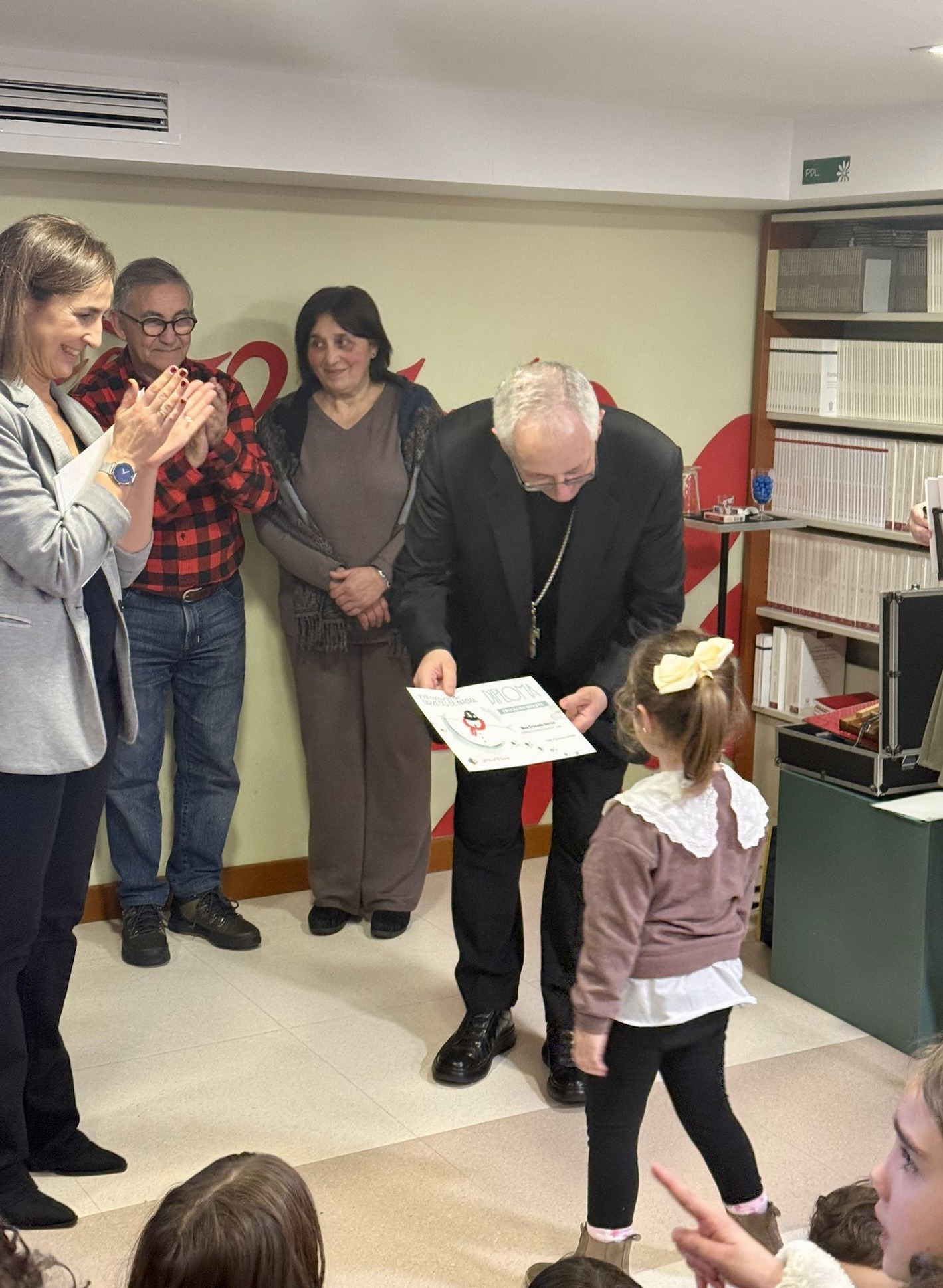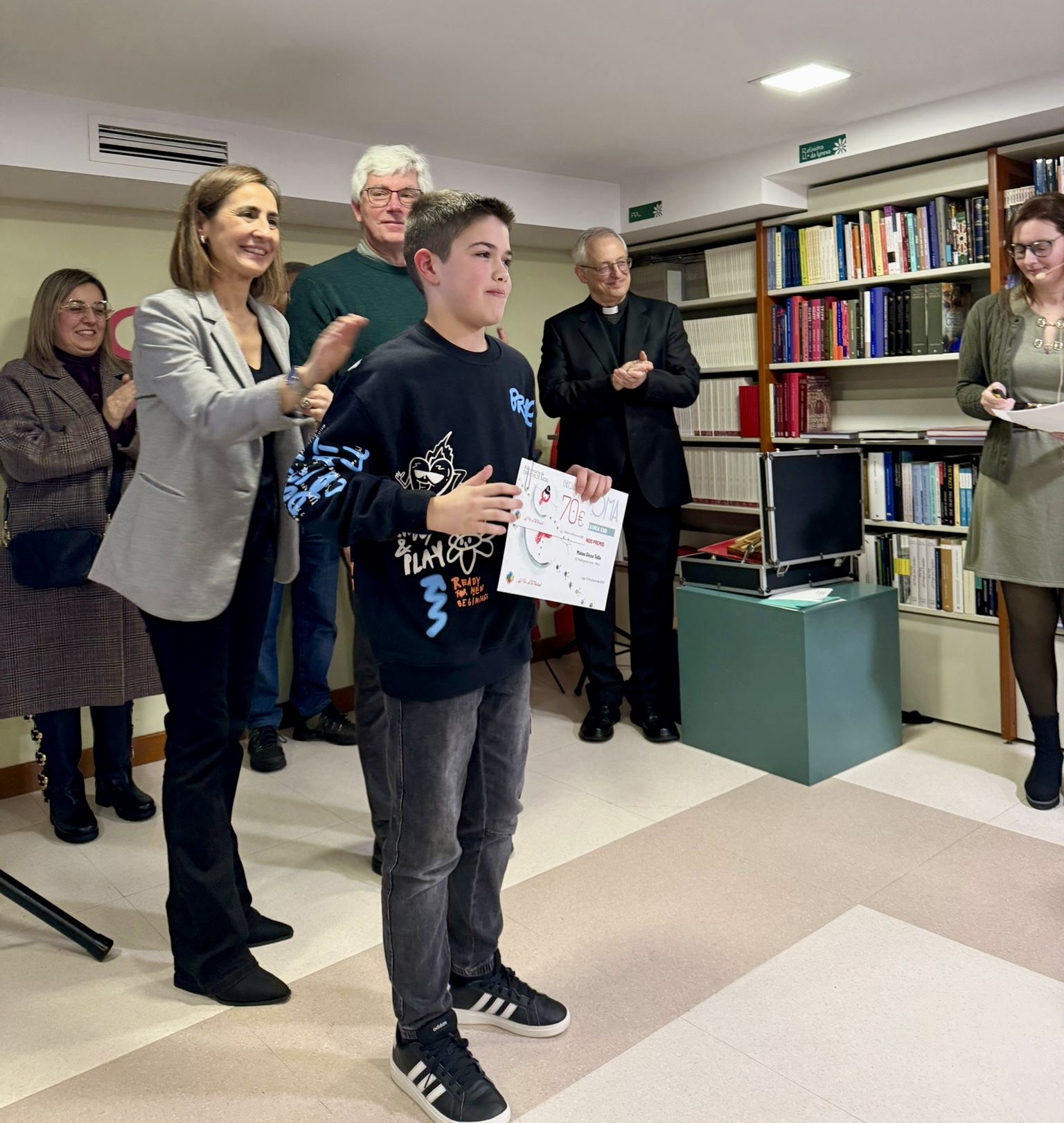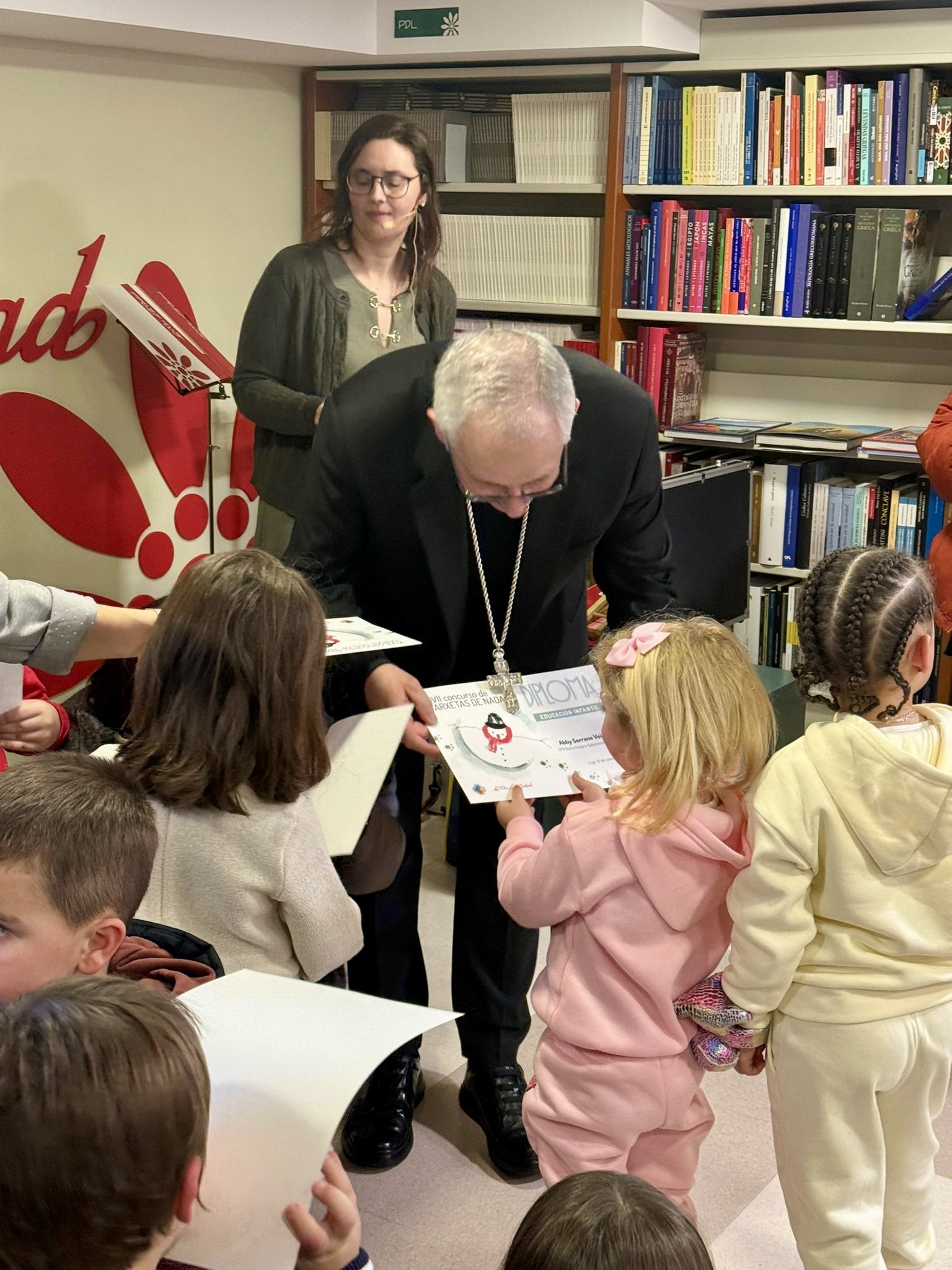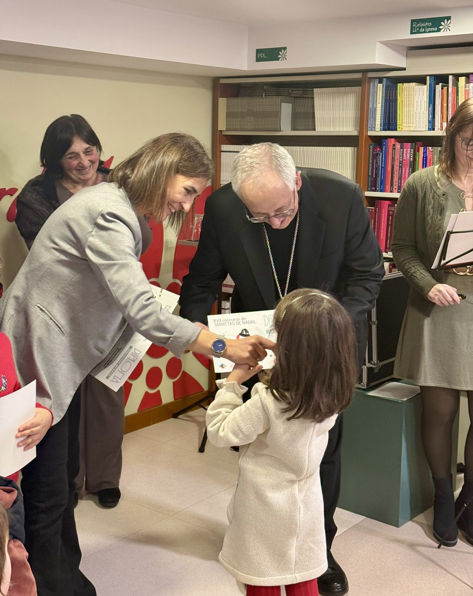 La Librería La Voz de la Verdad acogió el pasado lunes 12 de enero el acto de entrega de los premios del XVII Concurso de Tarxetas de Nadal, en una jornada que reunió a alumnado, familias y profesorado y que contó con la participación del obispo de Lugo, Mons. Alfonso Carrasco, presente en la entrega de galardones.