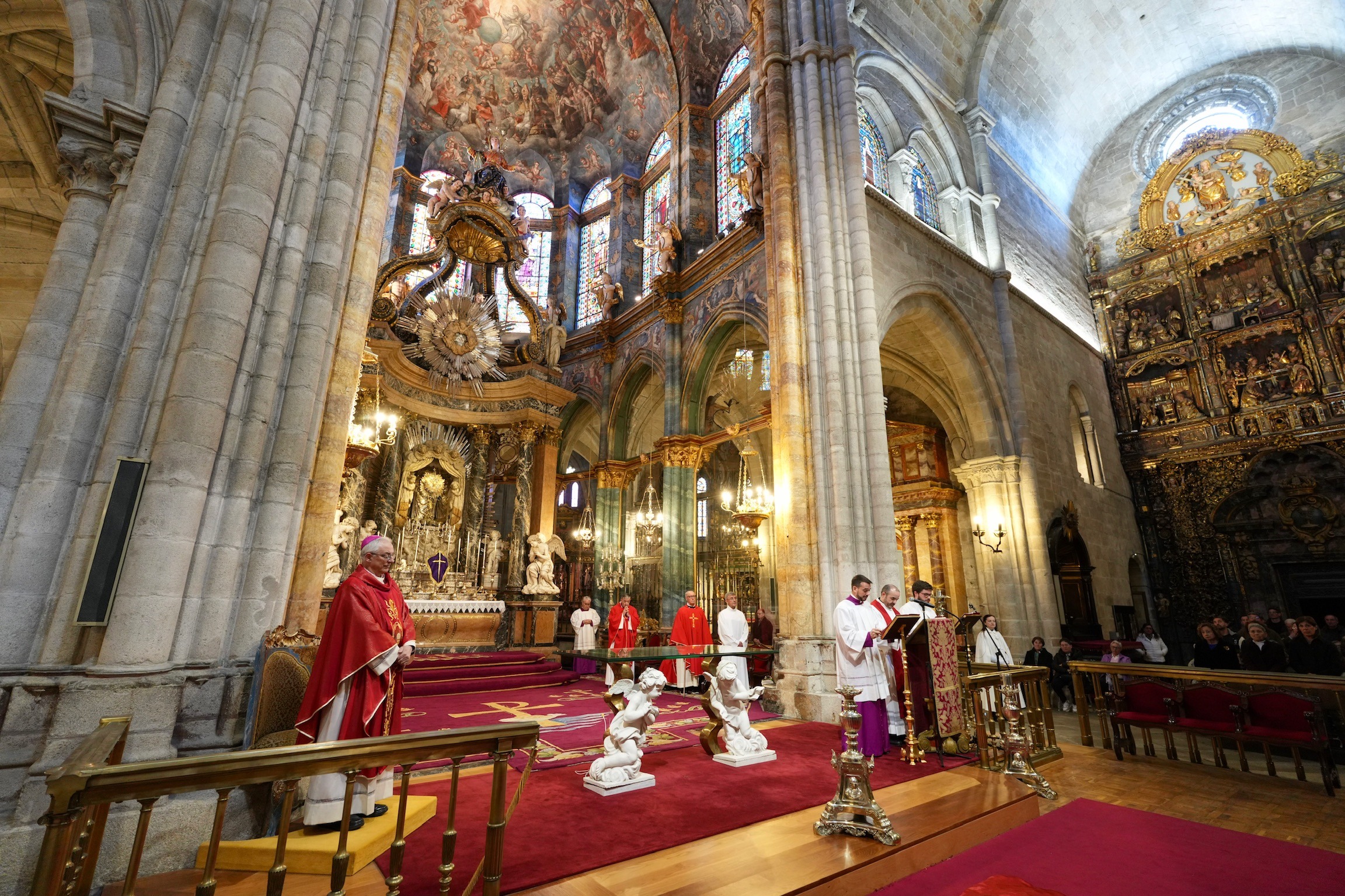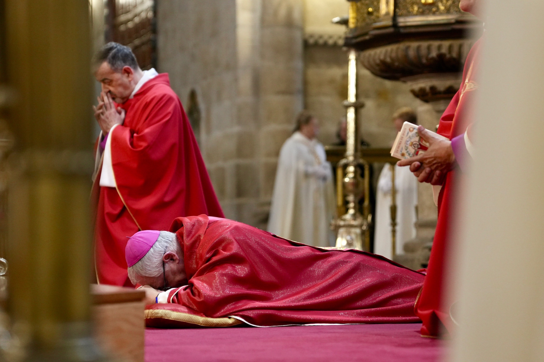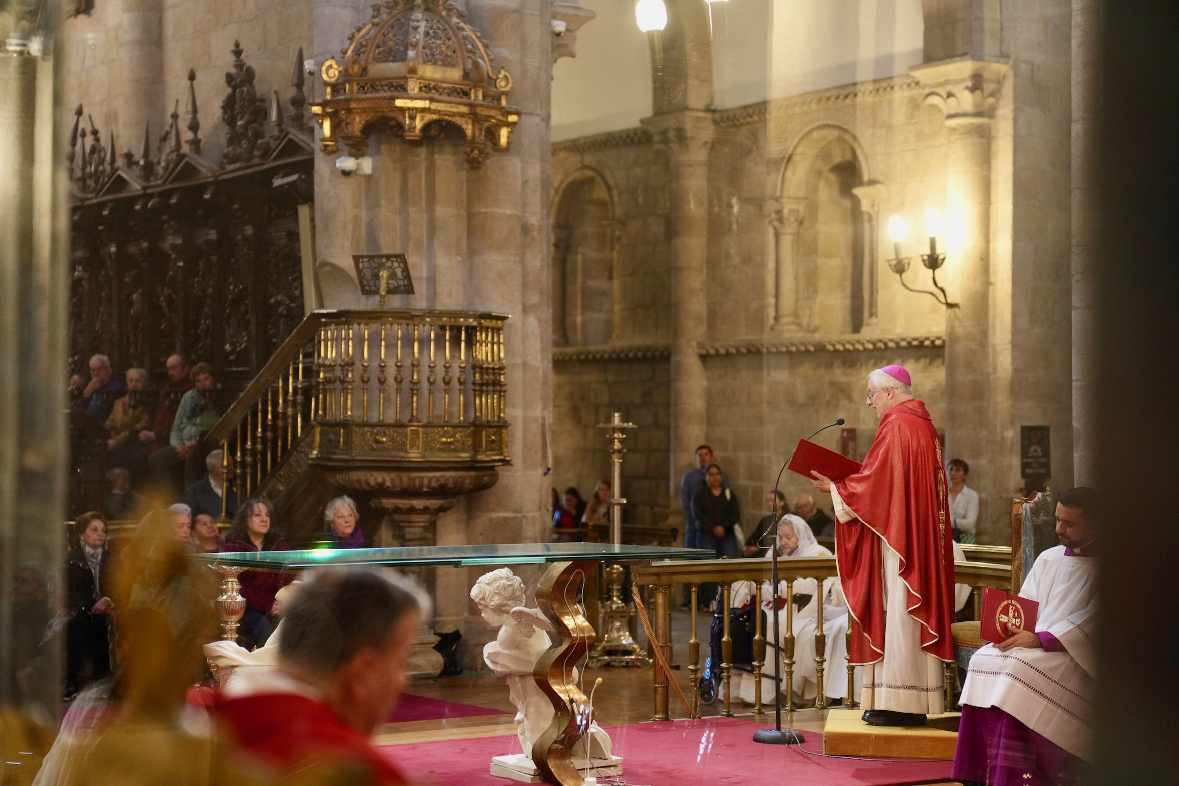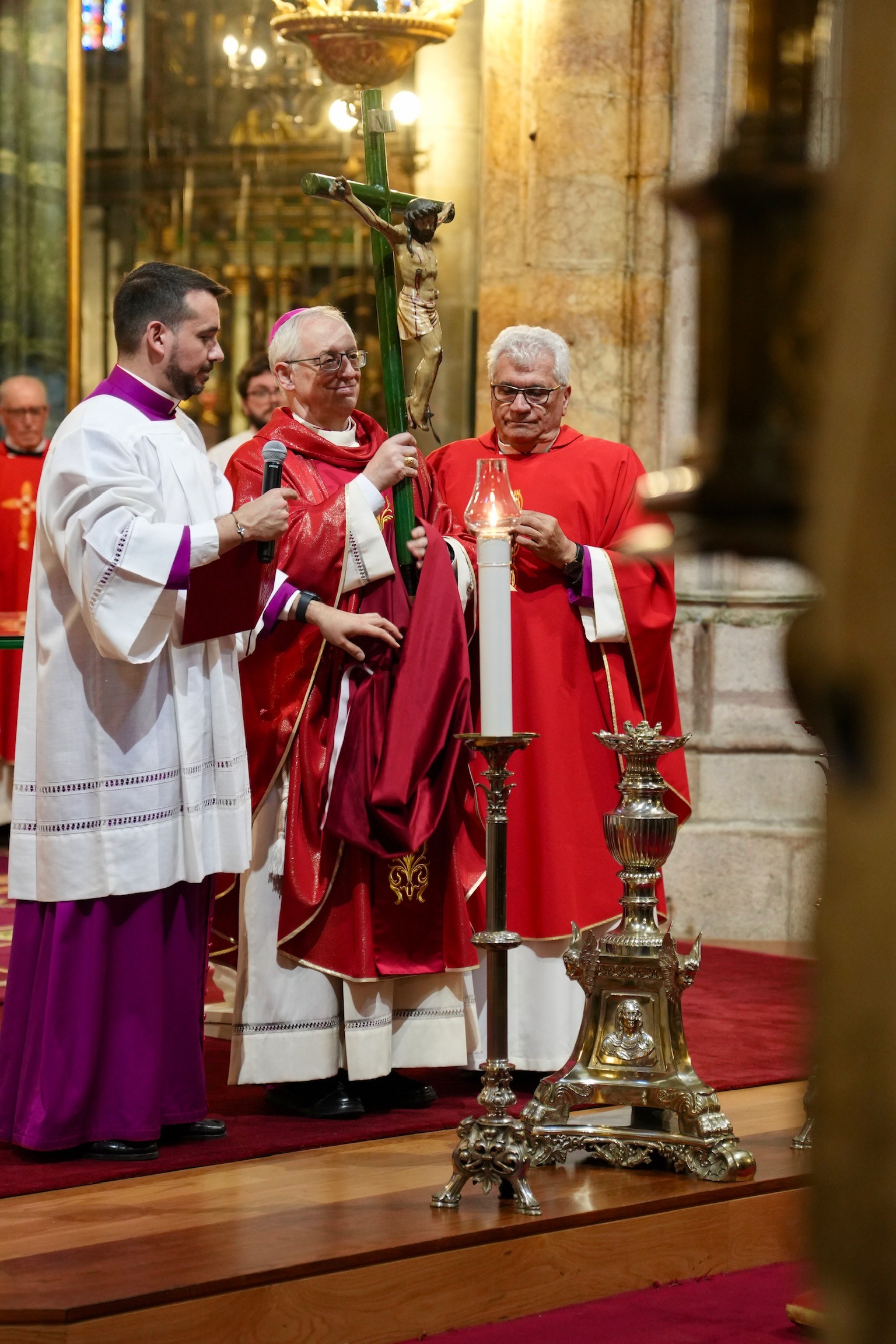 La Catedral de Lugo acogió este Viernes Santo la celebración de la Pasión del Señor, uno de los momentos más intensos del Triduo Pascual, presidido por el obispo de la diócesis y con la participación de numerosos fieles.