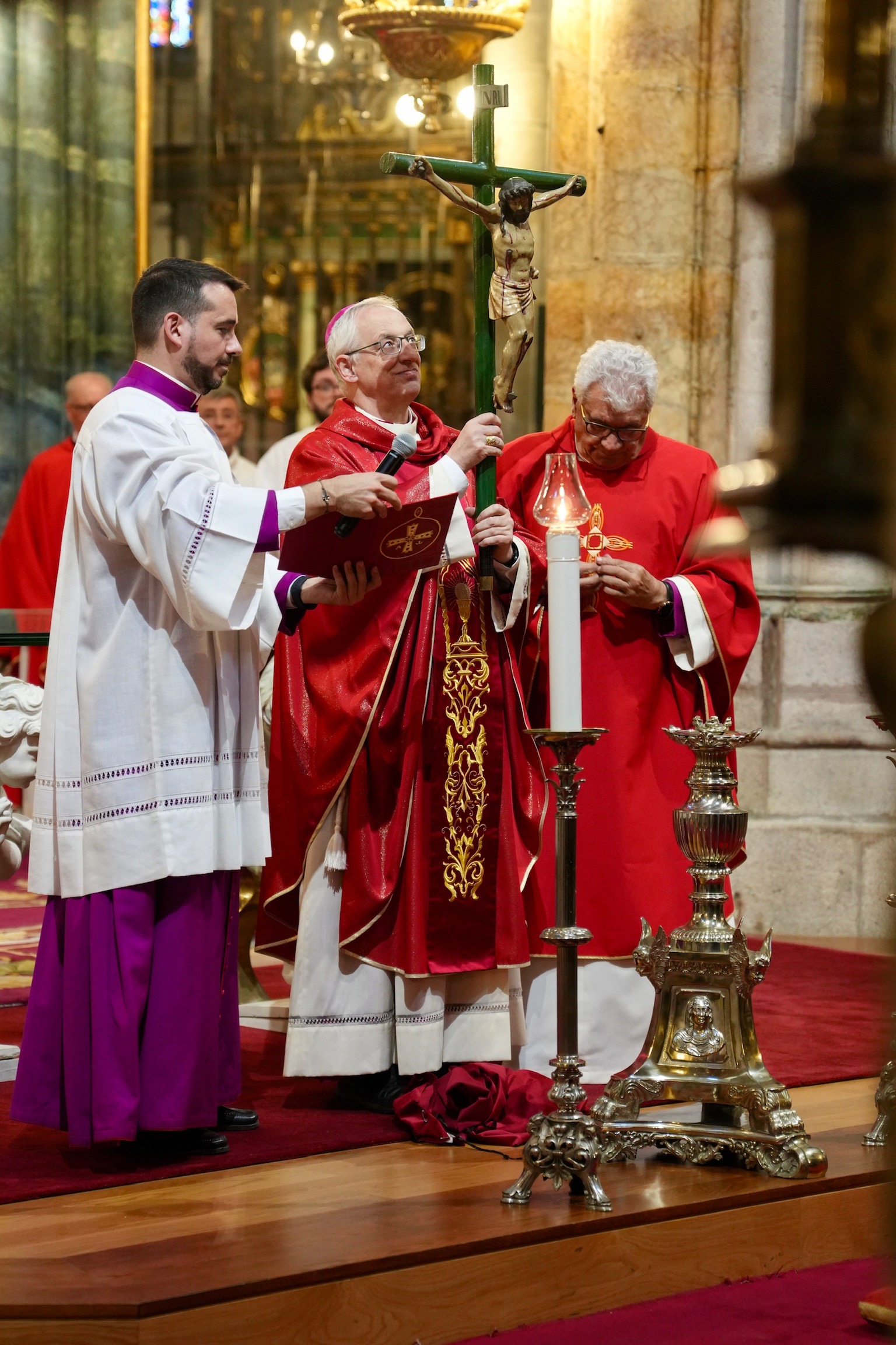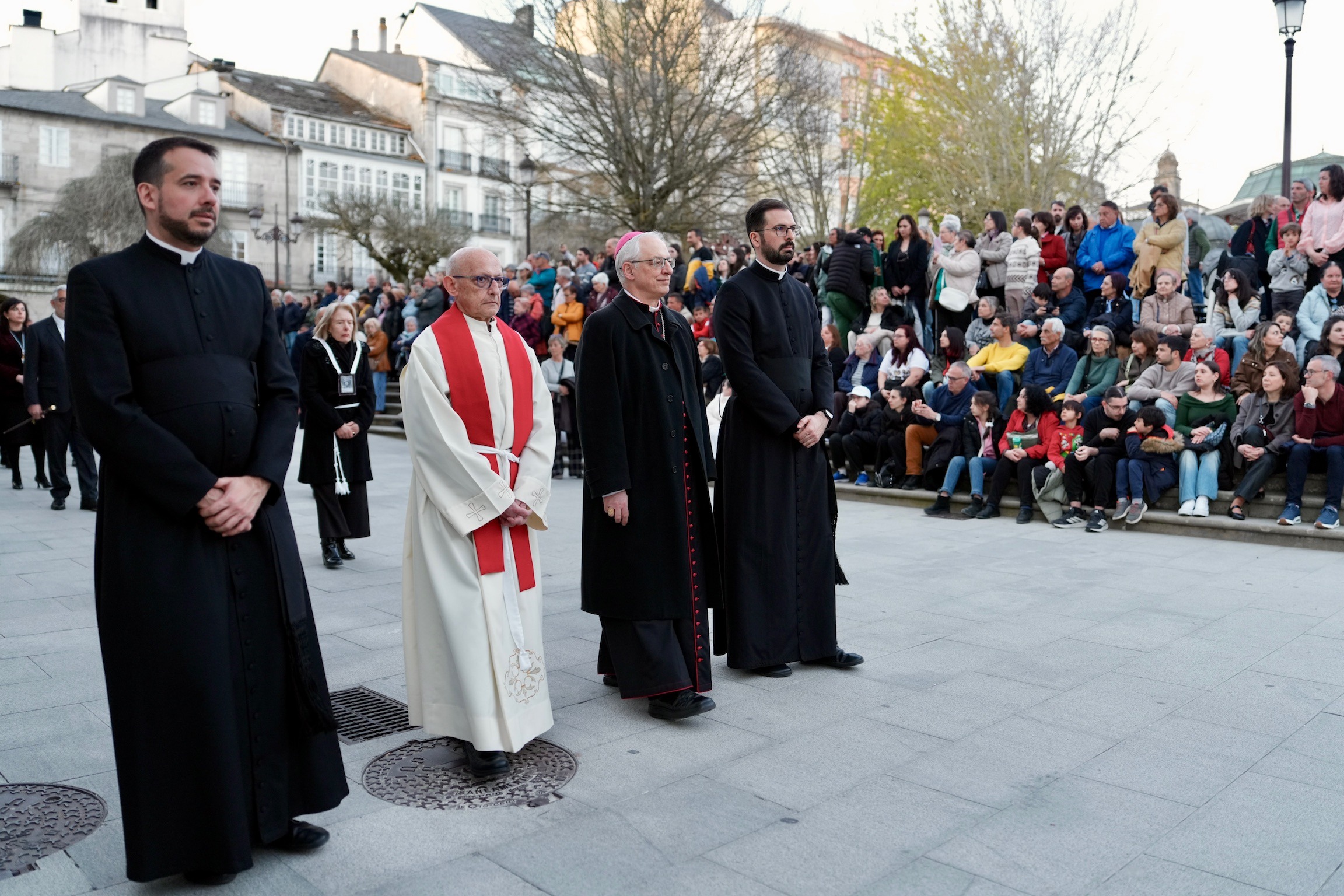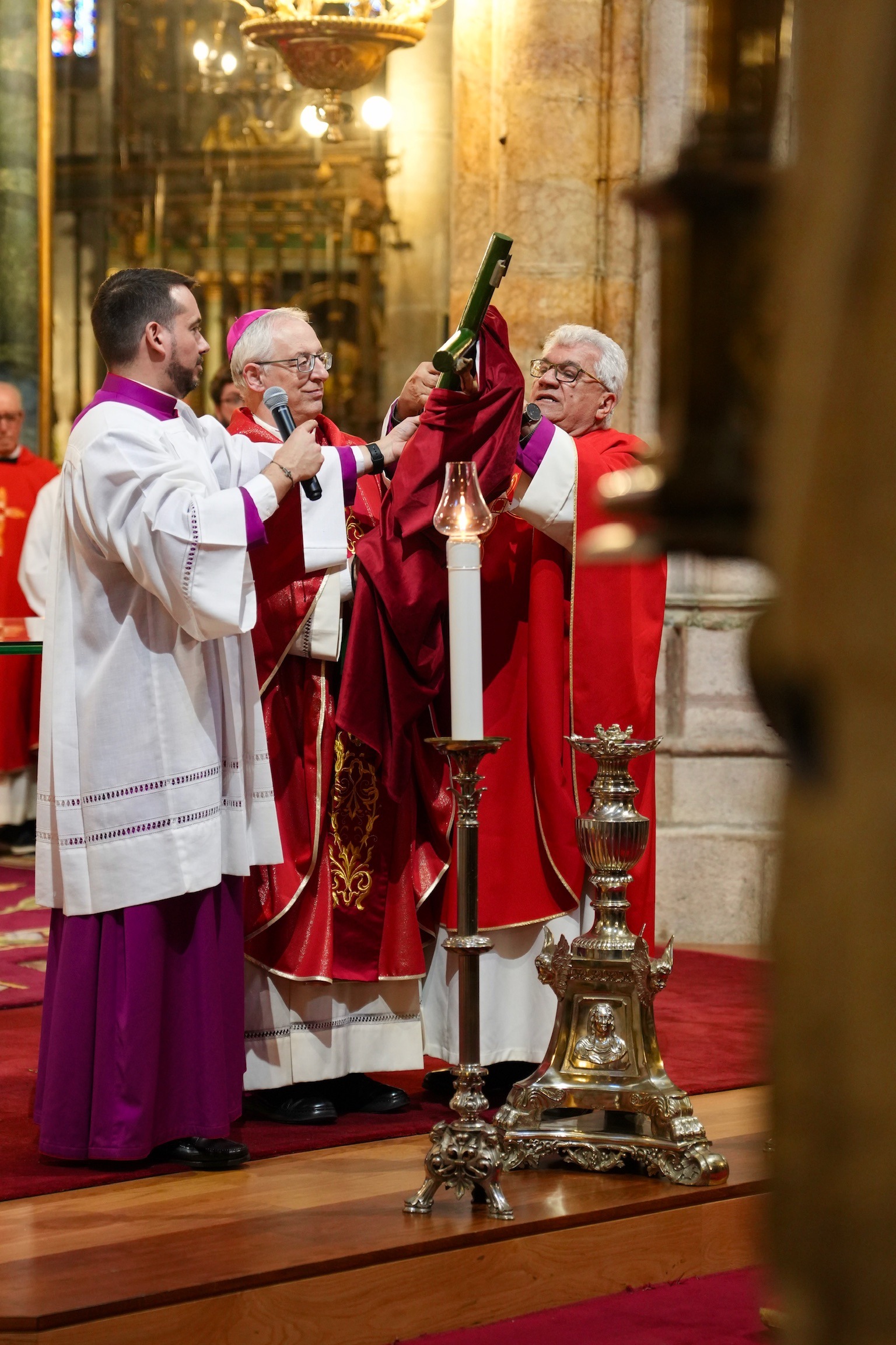 La Catedral de Lugo acogió este Viernes Santo la celebración de la Pasión del Señor, uno de los momentos más intensos del Triduo Pascual, presidido por el obispo de la diócesis y con la participación de numerosos fieles.