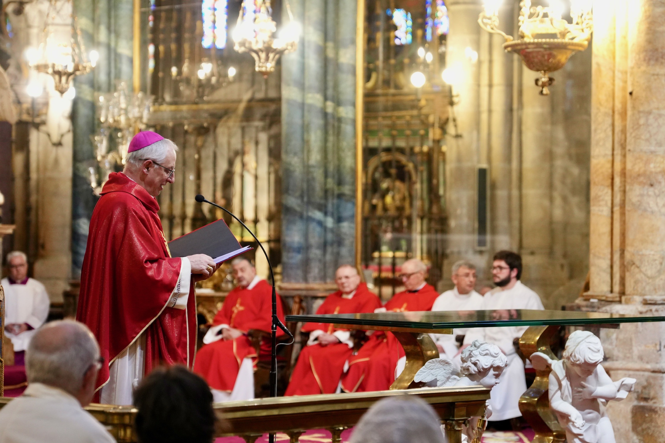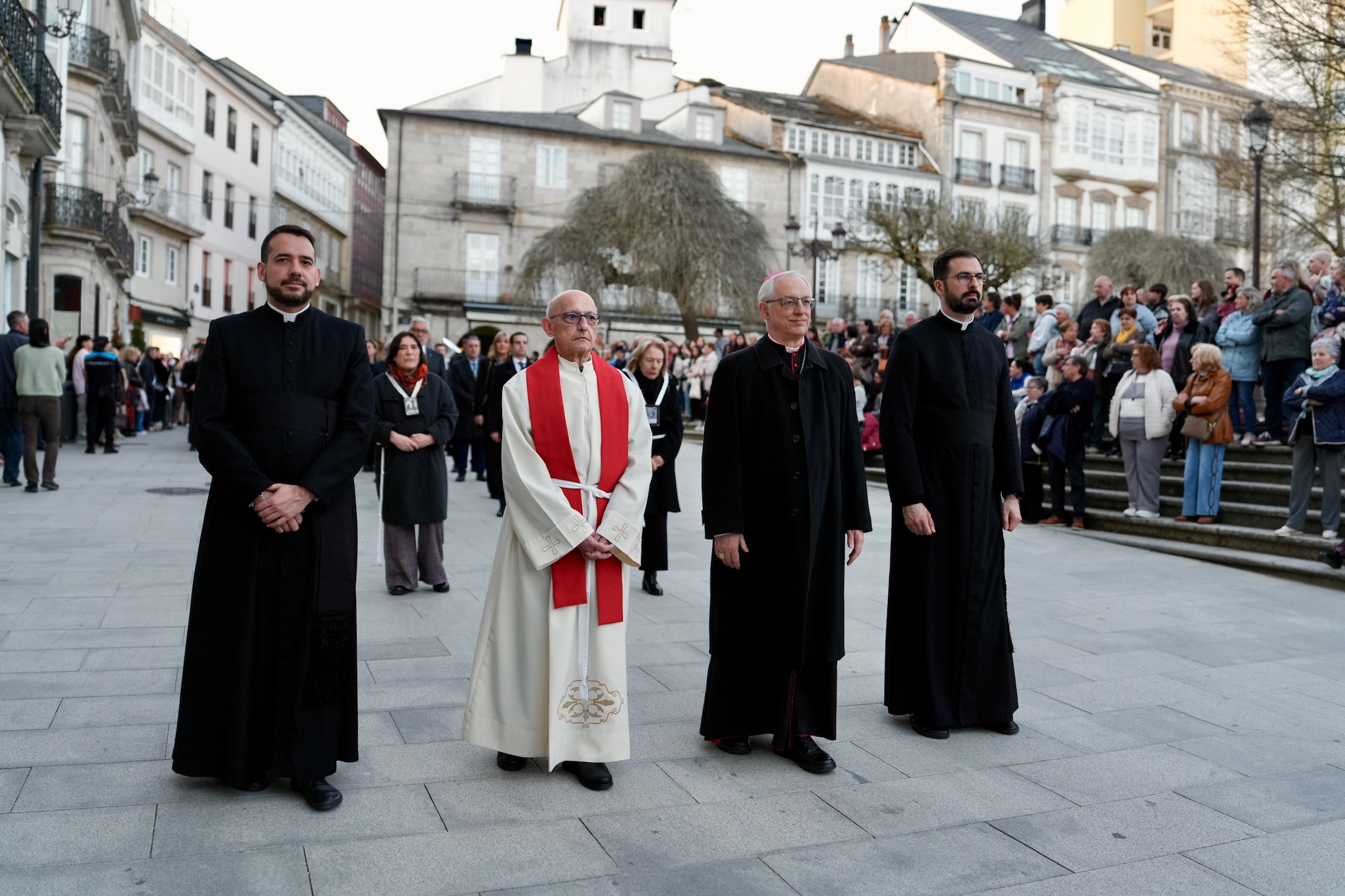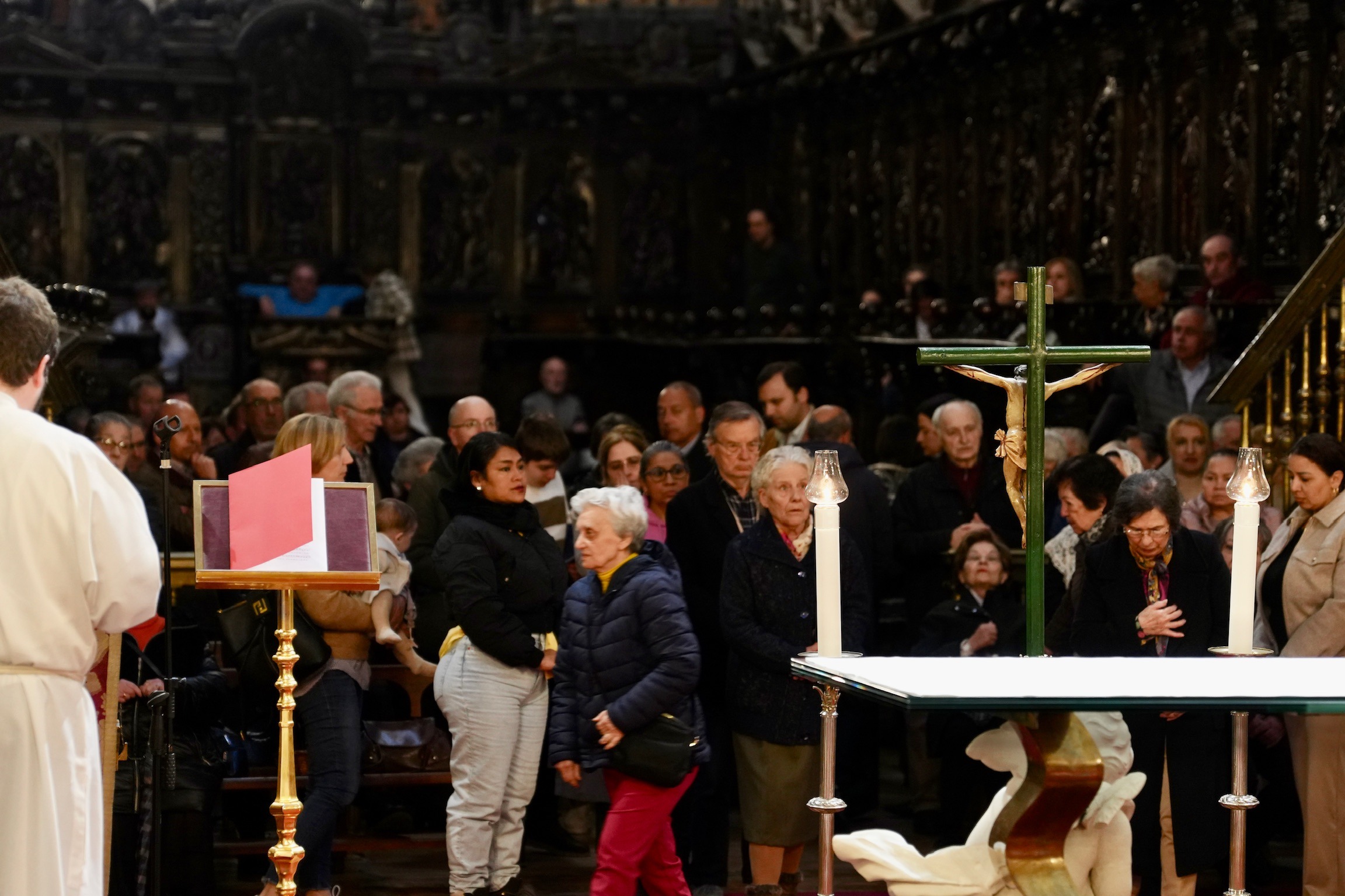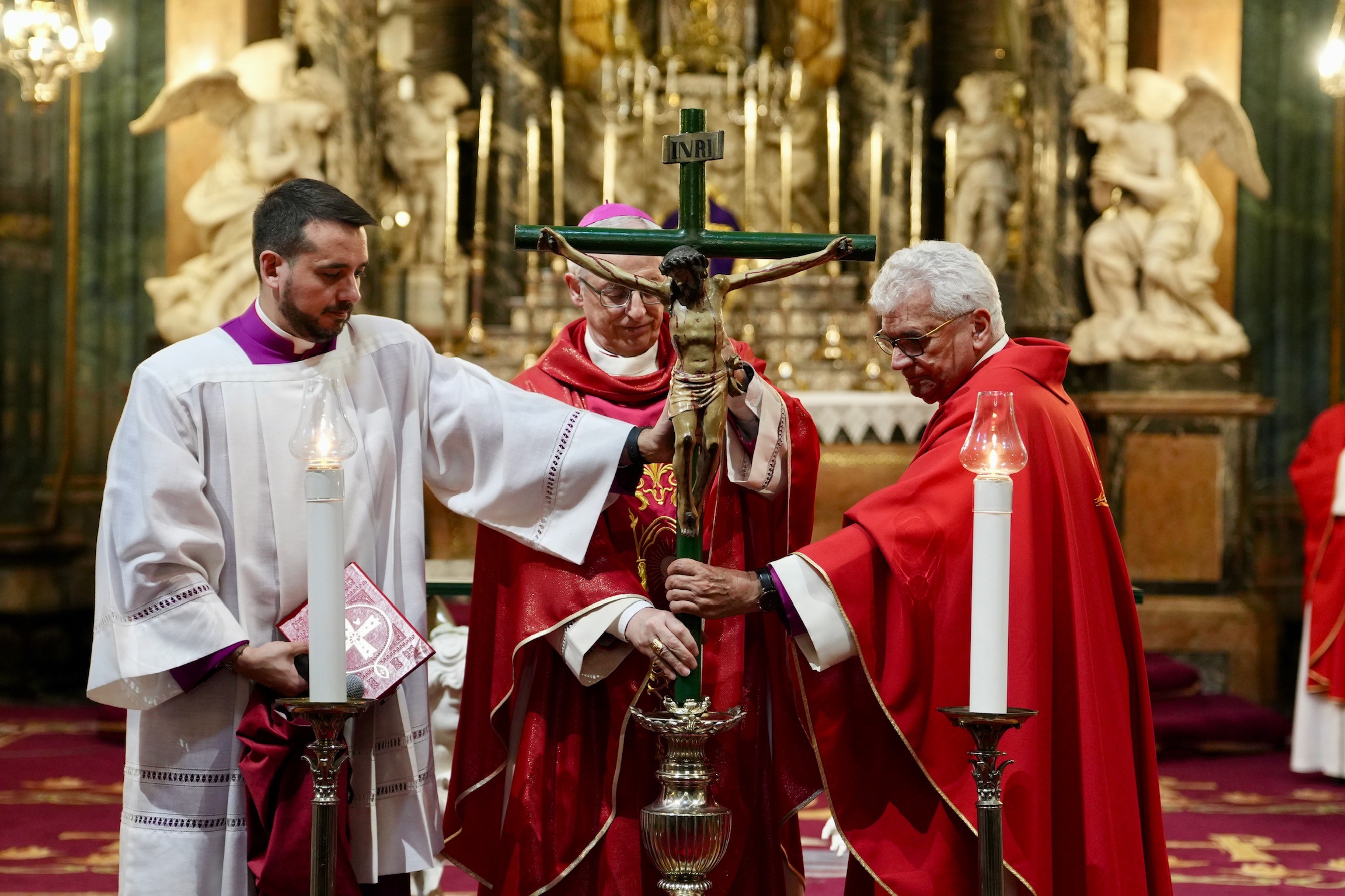 La Catedral de Lugo acogió este Viernes Santo la celebración de la Pasión del Señor, uno de los momentos más intensos del Triduo Pascual, presidido por el obispo de la diócesis y con la participación de numerosos fieles.