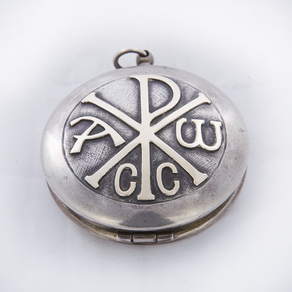 Los portaviáticos son pequeños recipientes —generalmente de plata— destinados a transportar el Santísimo Sacramento fuera del templo, especialmente para llevar la Comunión a los enfermos o a quienes no podían participar en la celebración eucarística. Por su función sagrada, estas piezas solían elaborarse con especial cuidado, incorporando motivos iconográficos que remiten a la Eucaristía, a la Pasión de Cristo o a santos vinculados con el ministerio pastoral. Su tamaño reducido contrasta con la profundidad simbólica y la calidad artística que muchos de ellos presentan.