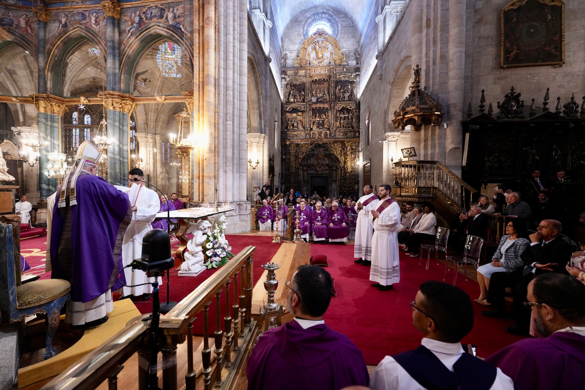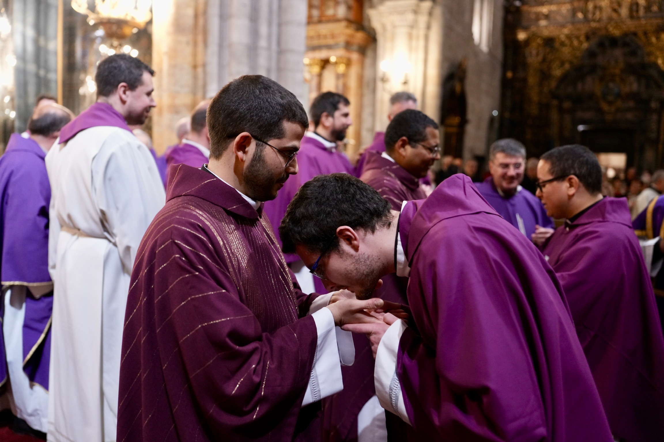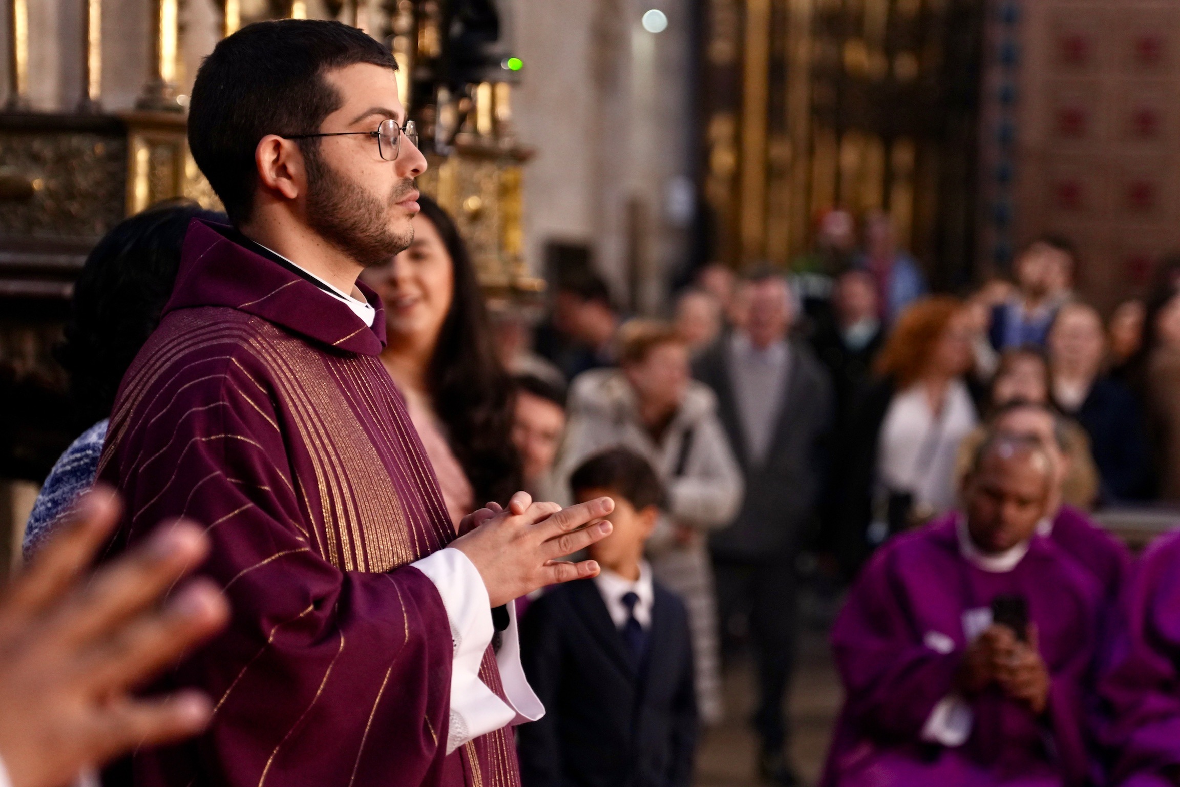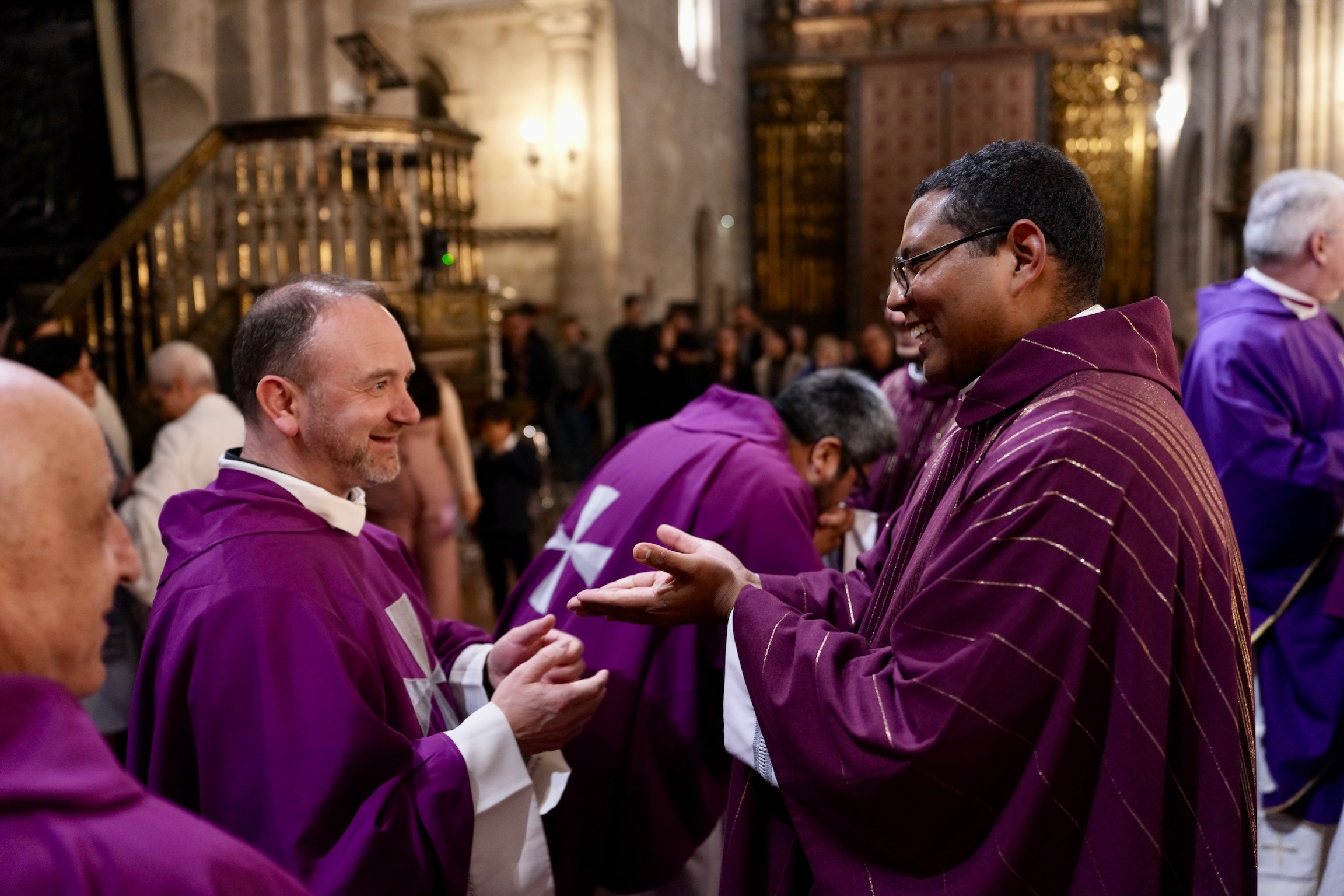 La Catedral de Lugo acogió este domingo la ordenación sacerdotal de Jesús Ángel González Beltrán y Salomón Andrés Nakhal Akel, en una celebración presidida por el obispo diocesano, Mons. Alfonso Carrasco Rouco, y marcada por la emoción, la acción de gracias y la amplia participación de fieles, sacerdotes, familiares y amigos.