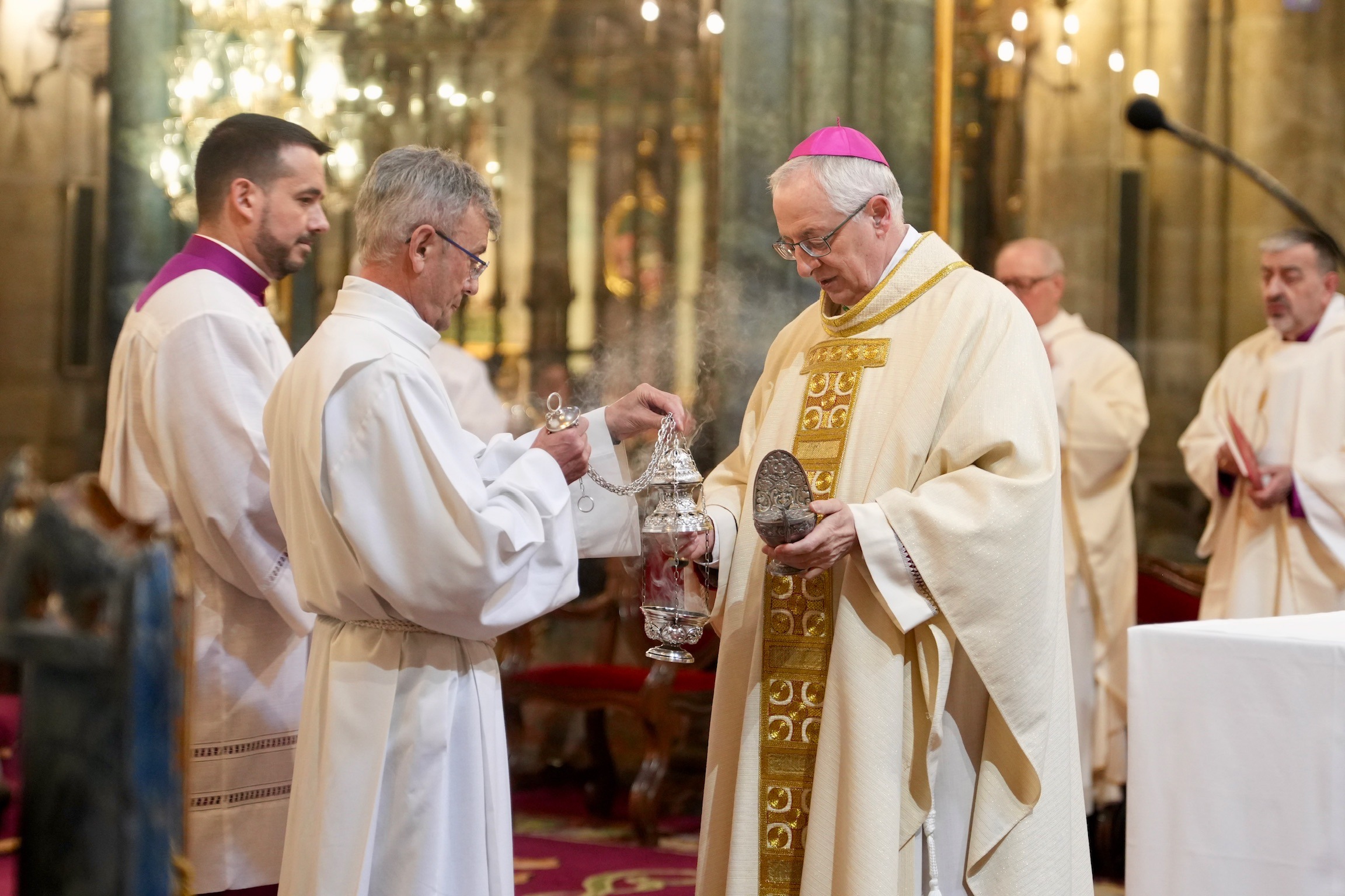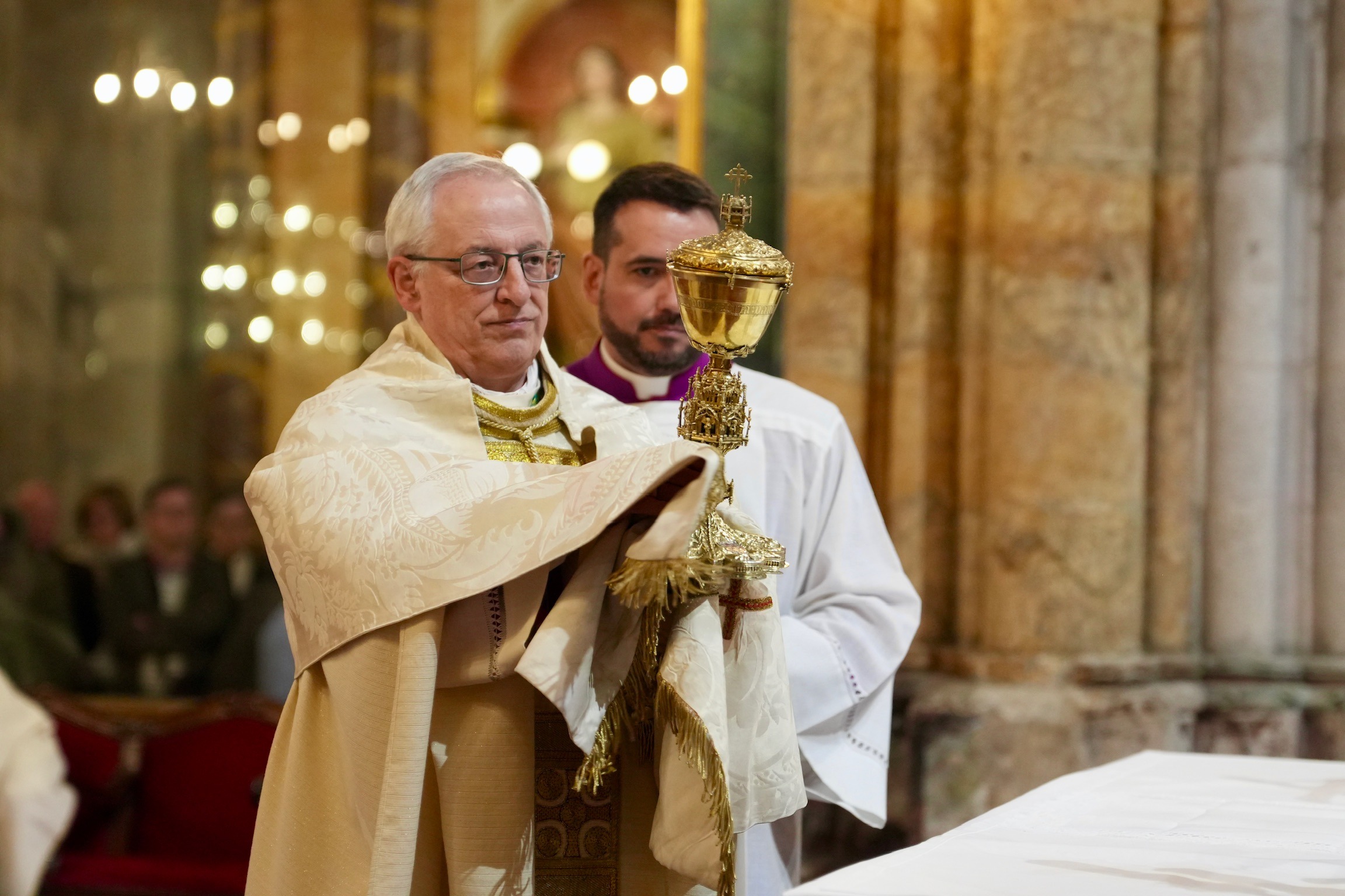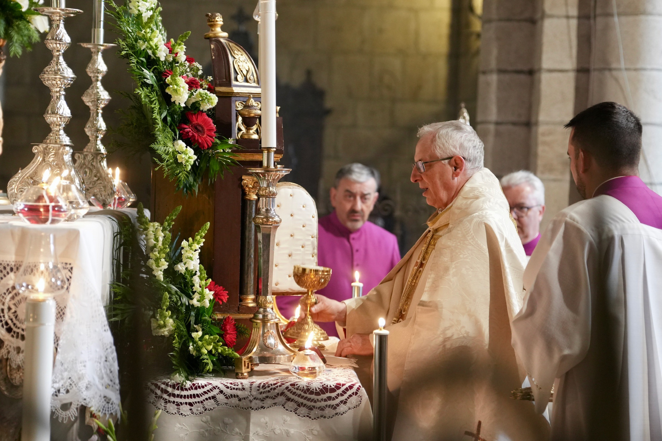 La Catedral de Lugo acogió en la tarde de este Jueves Santo la celebración de la Eucaristía de la Cena del Señor, inicio del Triduo Pascual, presidida por el obispo de la diócesis y con la participación de numerosos fieles.