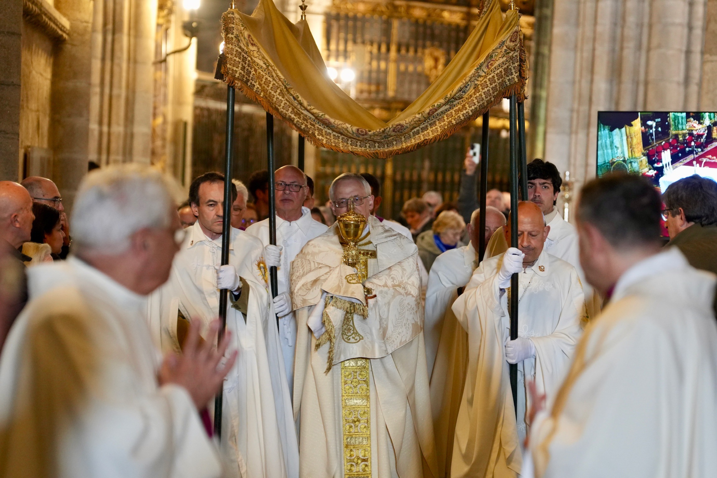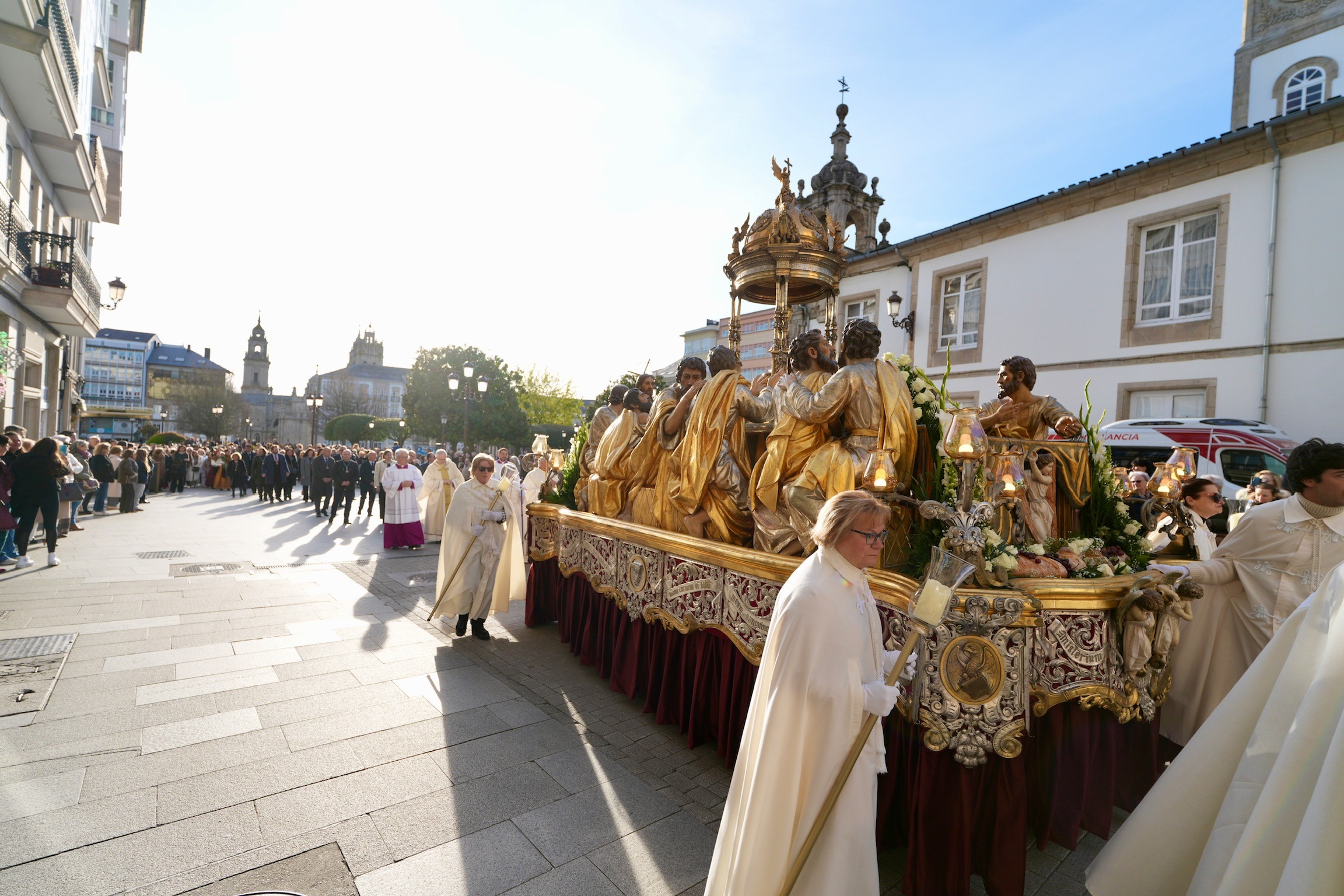 Tras la celebración, tuvo lugar la procesión de la Santa Cena, organizada por la Confraría Sacramental da Santa Cea do Señor, prolongando por las calles de Lugo el clima de oración y recogimiento propio de esta jornada.