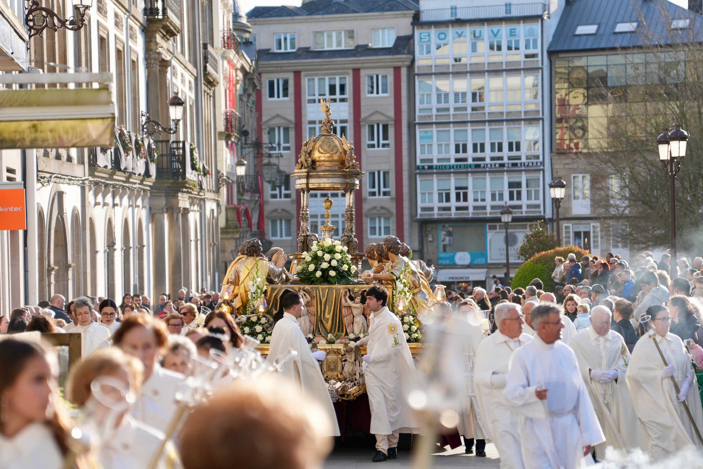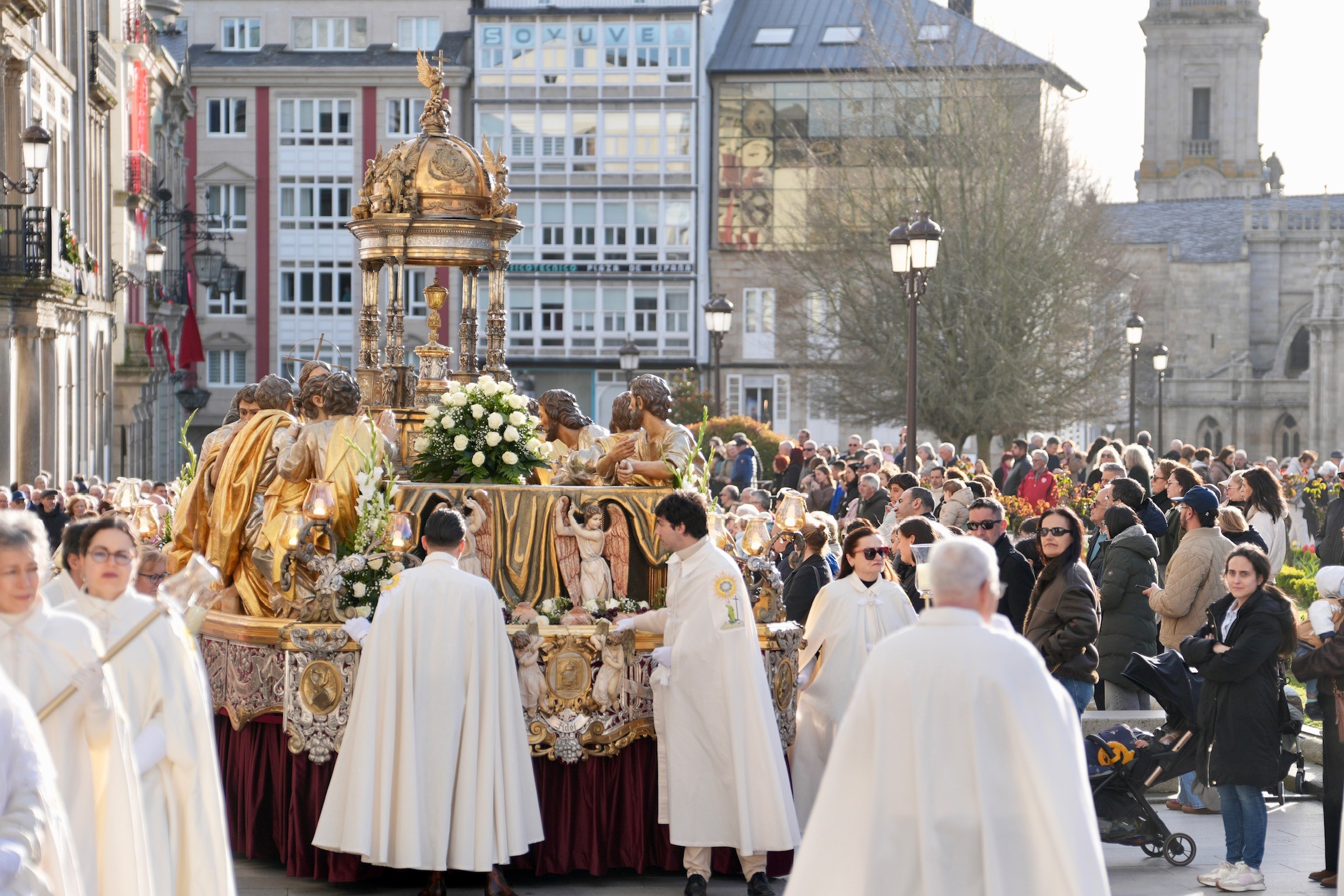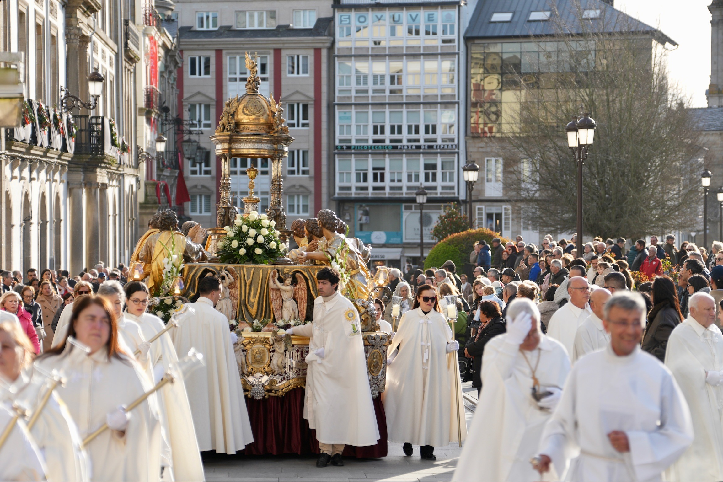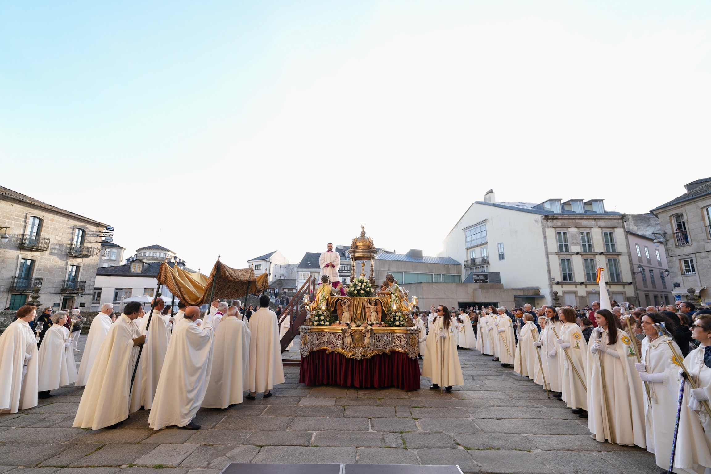 Este hecho convierte la procesión en un momento especialmente significativo, en el que el propio Señor recorre la ciudad, haciendo visible la fe del pueblo de Lugo.