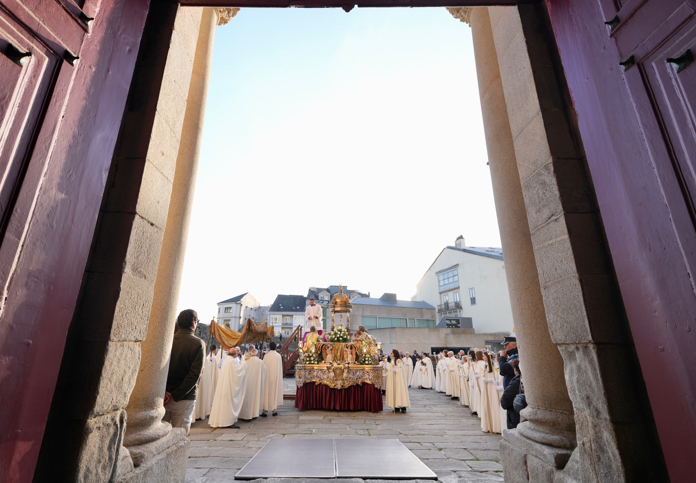 La ciudad conserva además un rasgo singular que distingue su Semana Santa: el privilegio de sacar el Santísimo Sacramento en procesión por las calles antes de la reserva, una tradición excepcional vinculada a la histórica devoción eucarística de la Catedral de Lugo.