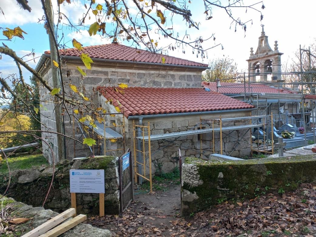 Por un lado, han finalizado las obras de restauración integral de la iglesia de Santalla de Rebordaos, en O Saviñao. La intervención ha permitido renovar completamente la cubierta y la estructura de madera, mejorar la estanqueidad del edificio, restaurar los paramentos interiores con criterios de respeto a la fábrica original y dignificar elementos singulares como la pila bautismal. También se ha renovado el pavimento y se ha instalado una iluminación más adecuada, además de acometer trabajos de limpieza en las fachadas y su entorno.